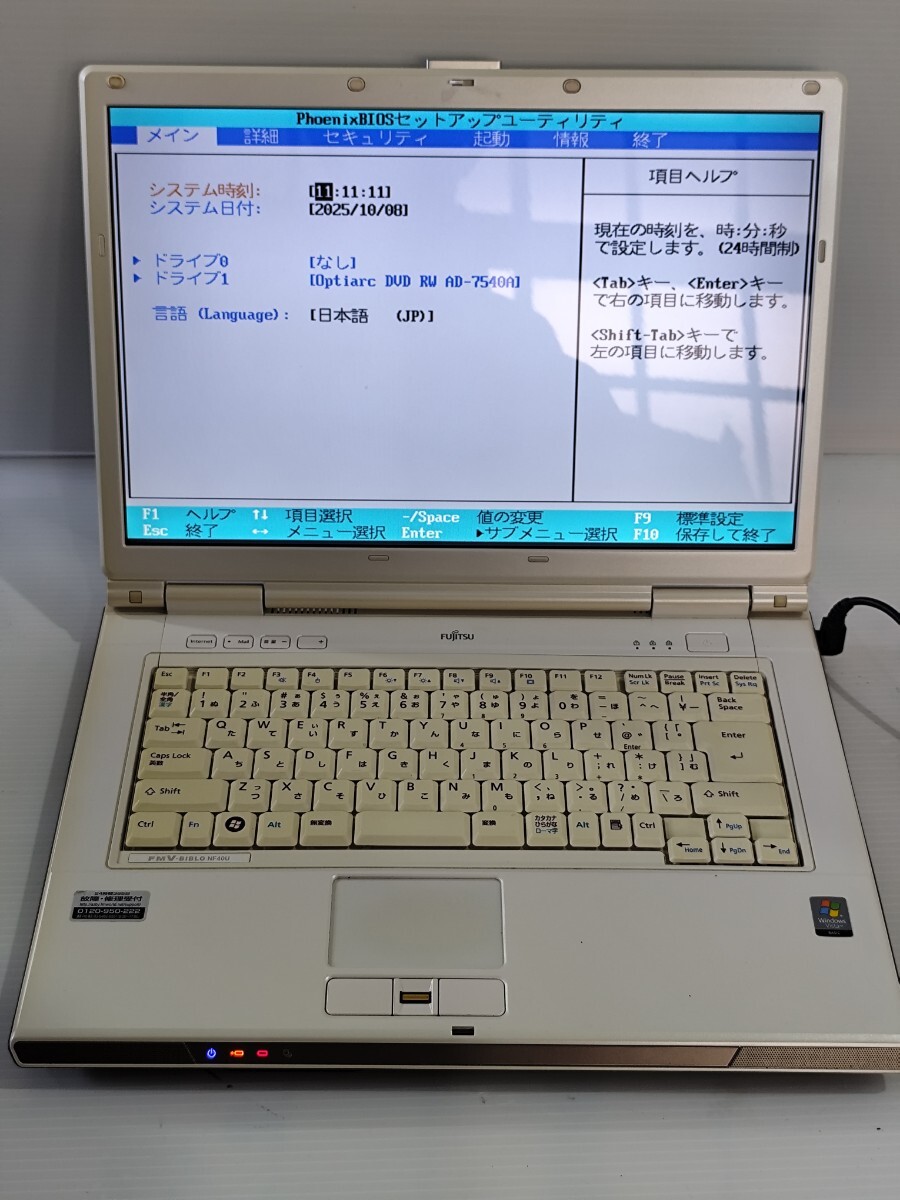 ※何時間、何分持つかなどはBIOS画面状態から確認できないため不明です。