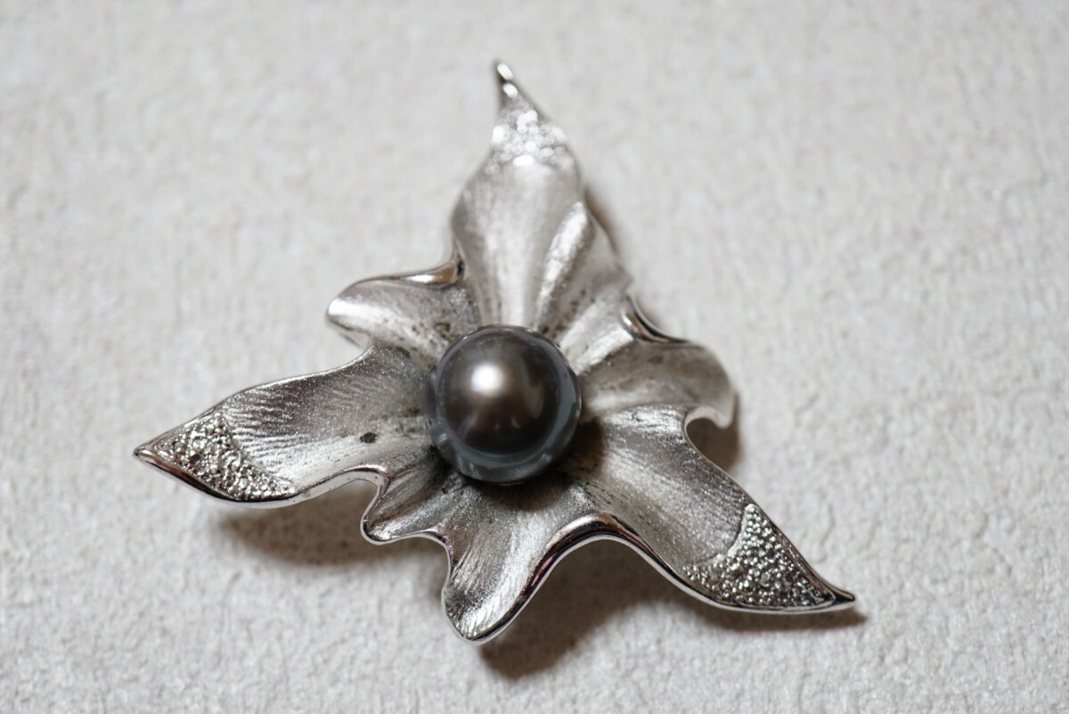 589 黒真珠 本真珠 パール シルバー ペンダント ブローチ ヴィンテージ アクセサリー SILVER刻印 冠婚葬祭 2way 装飾品