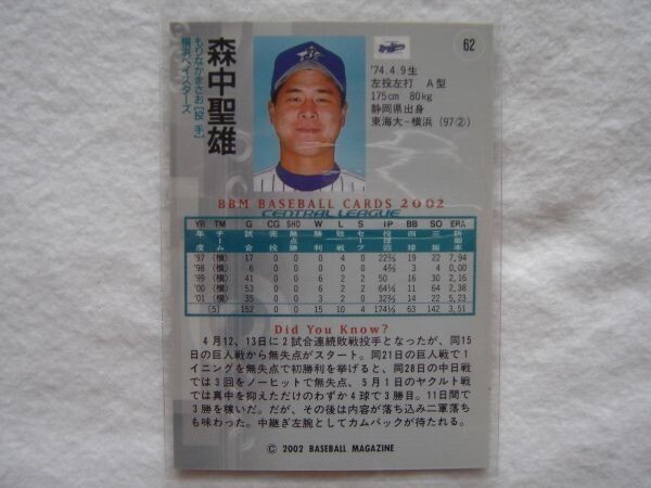 【BBM プロ野球カード 2002】No.62 森中聖雄 横浜ベイスターズ【トレーディングカード トレカ ベースボールマガジン社】
