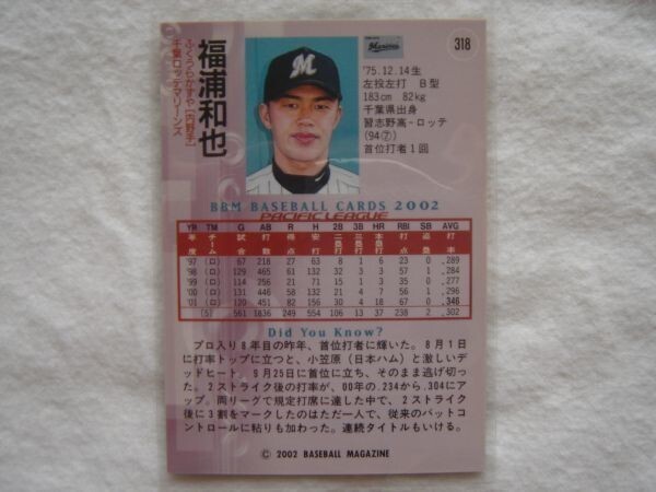 【BBM プロ野球カード 2002】No.318 福浦和也 千葉ロッテマリーンズ サインパラレル【トレーディングカード トレカ ベースボールマガジン社