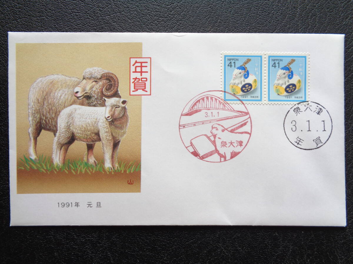 初日カバー     1991年     平成3年用年賀切手    元旦年賀
