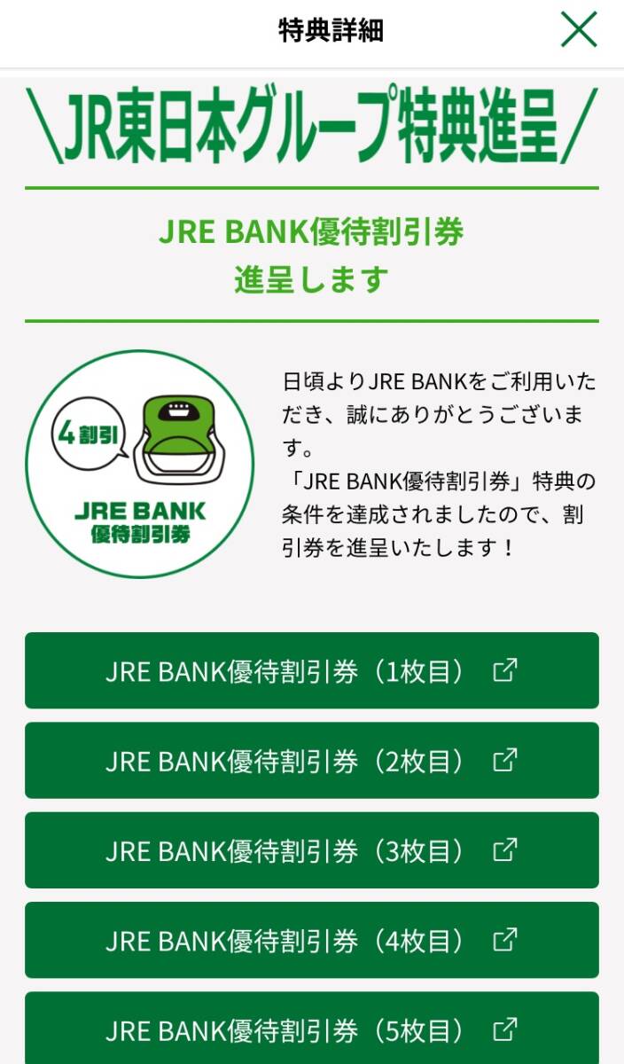 JRE BANK 優待割引券(4割引) 5枚セット JR東日本グループ