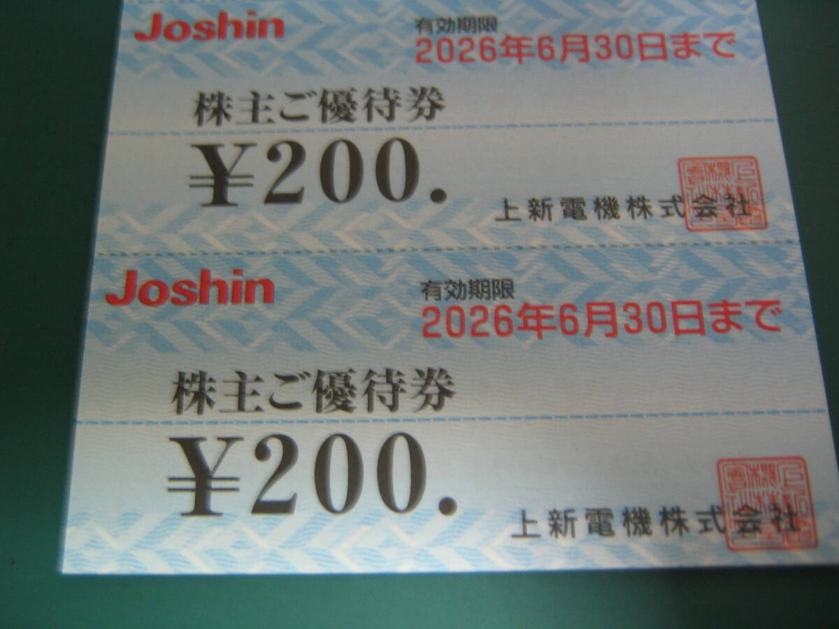 ジョーシン 上新電機 株主優待券 18000円分(200円券×90枚)1冊 2冊まで対応いたします。 条件により送料無料です。Joshin