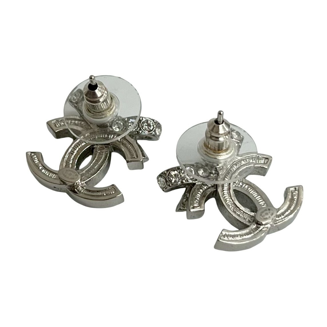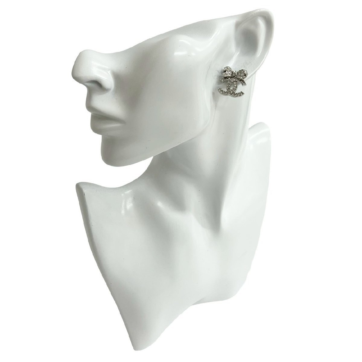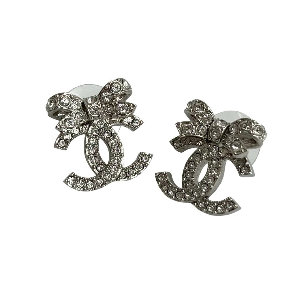 極 美品 箱付 コメあり B25V CHANEL シャネル ココマーク リボン ラインストーン メタル ピアス アクセサリー レディース シルバー 79468