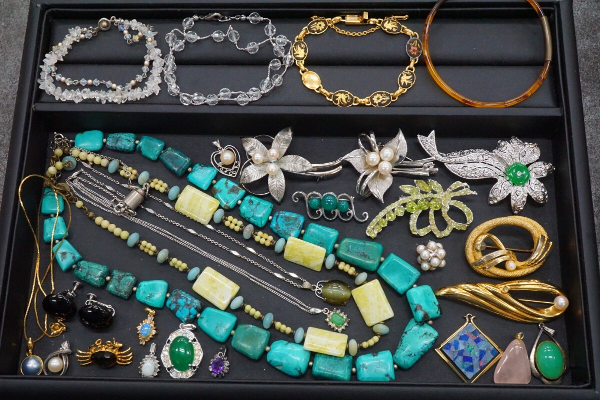 C406 ジャンク含む 本真珠 天然石など ネックレス ペンダント ブローチ他 ヴィンテージ アクセサリー 大量 まとめて おまとめ まとめ売り