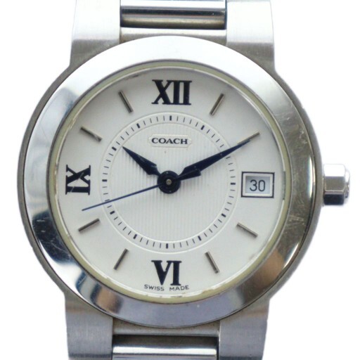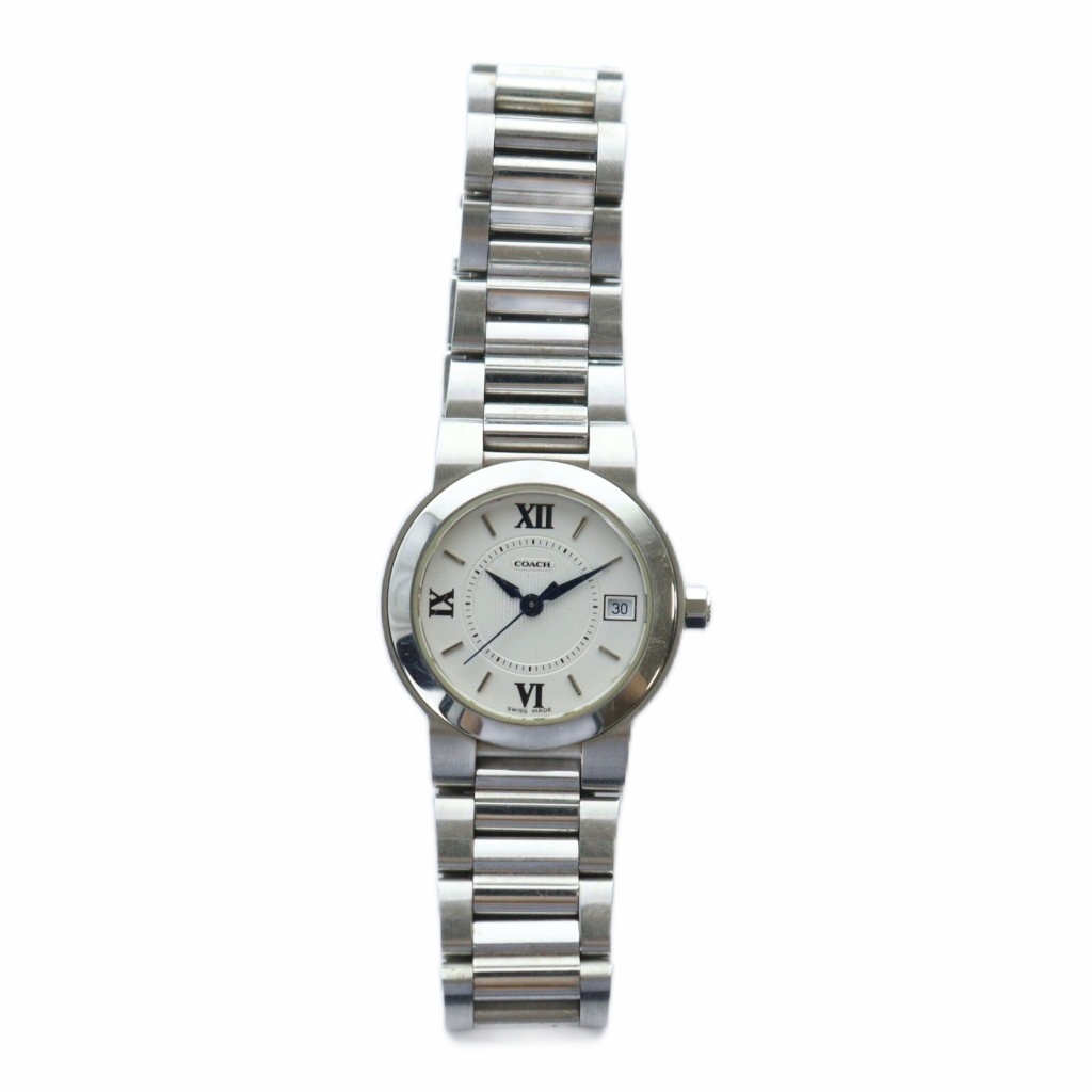 コーチ COACH ジャンク品 腕時計 ウォッチ クォーツ カレンダー付き ローマン ロゴ シルバーカラー 銀色 白文字盤 0192 /MQ