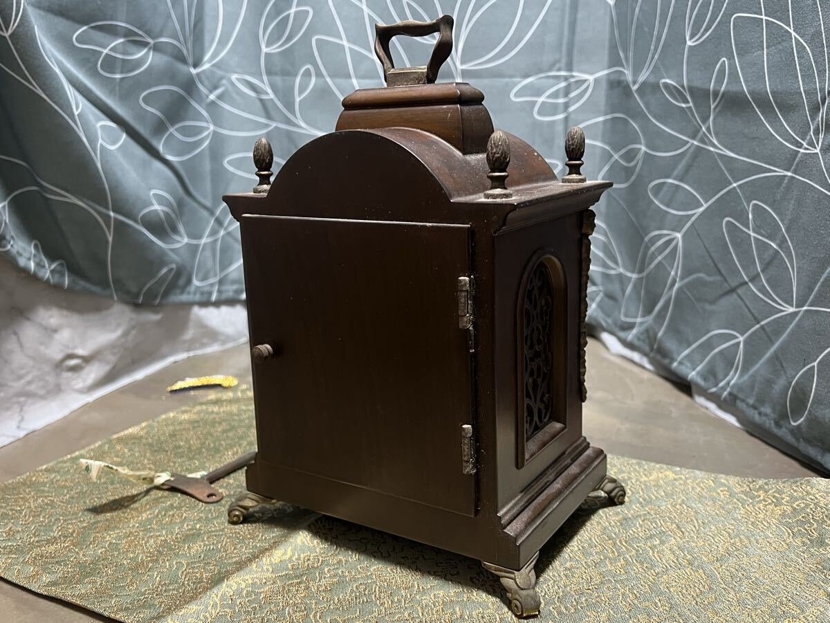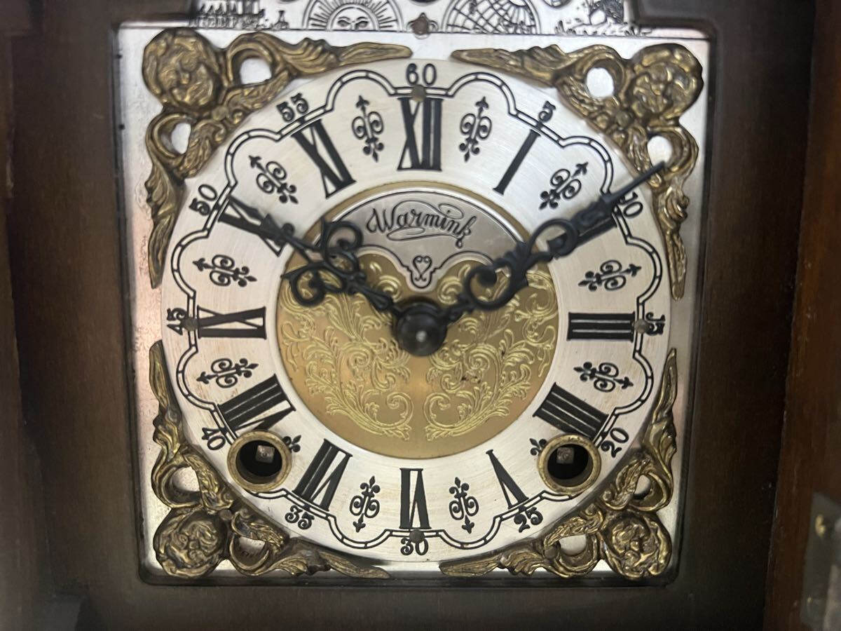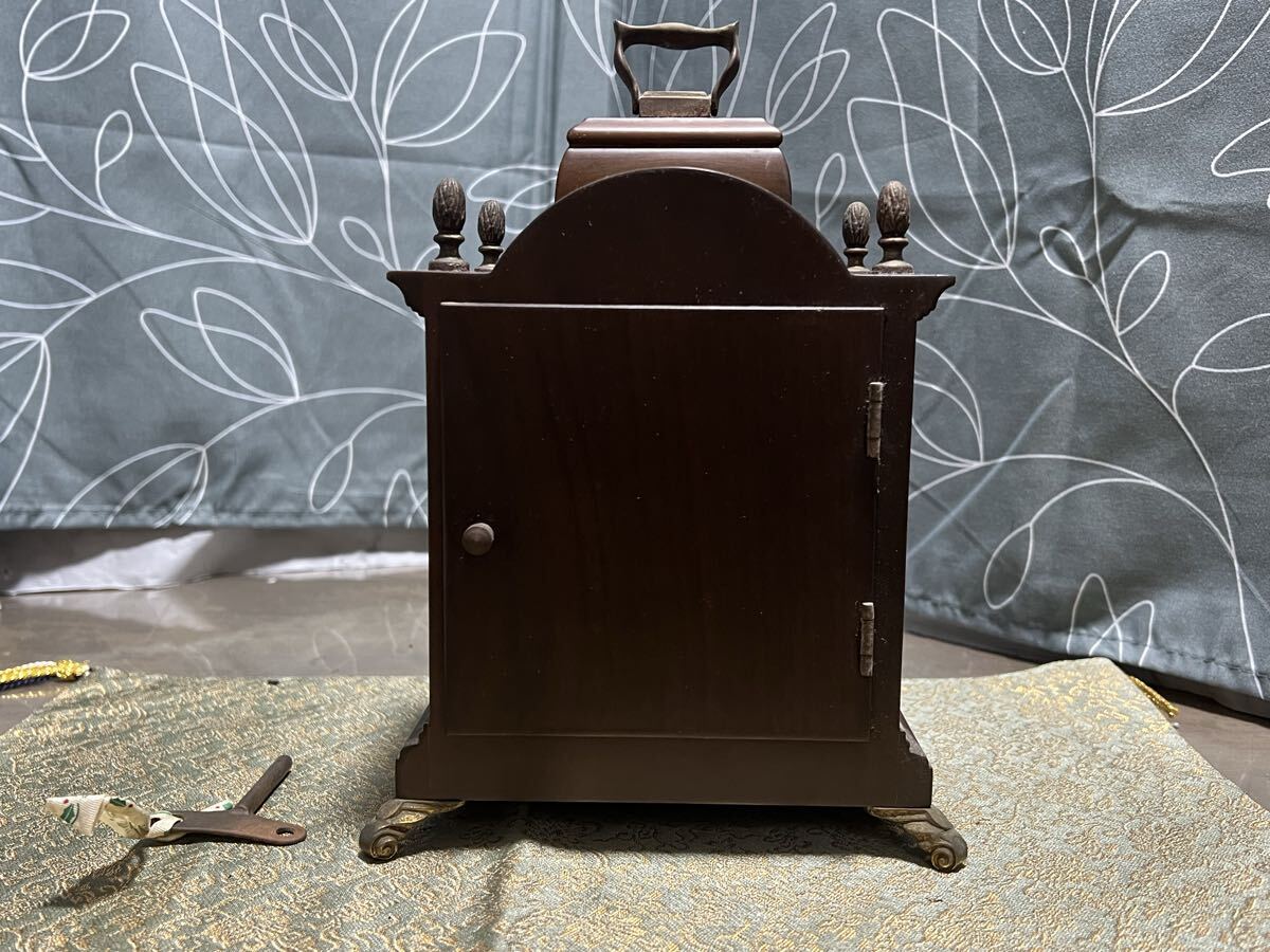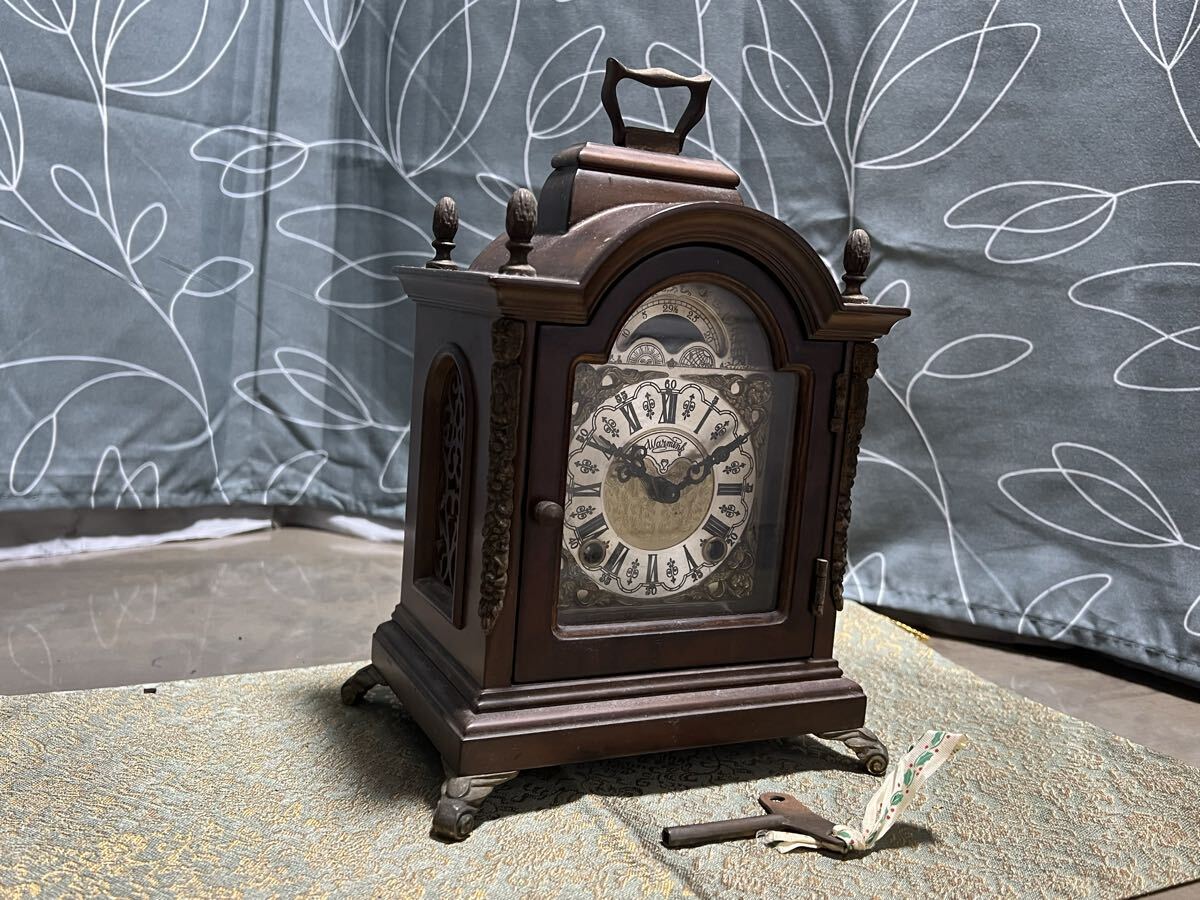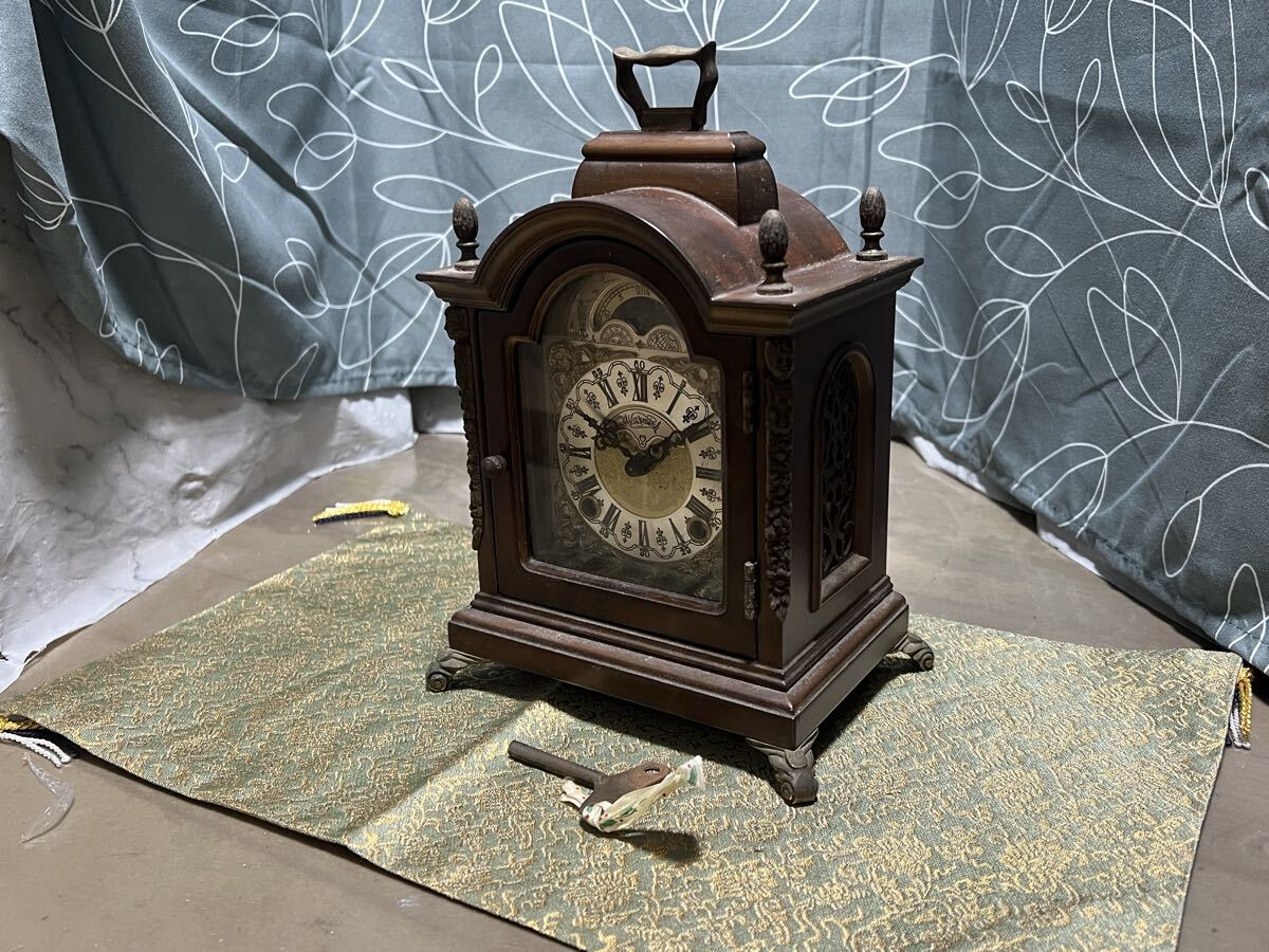 オランダのワルミンク(Warmink)社製のWUBAアンティーク置き時計 ダークブラウンの木製アンティーク置時計、手巻き式で鍵付き。 - 素材: 木製 - デザイン: アンティークスタイル - 機能: 手巻き式 - 色: ダークブラウン - 付属品: 鍵付き - 社名: ワルミンク(Warmink) - 旧社名: Warmink Uurwerken en Barometers Almelo(WUBA) - タイプ: 卓上時計、置き時計 - サイズ: 幅17×奥行12×高さ24cm - スタイル: ローマ数字の文字盤に、エンジェルの装飾や月齢表示(ムーンフェイズ) - 製造国: オランダ ご覧いただきありがとうございます。 個人の不用品出品ですので、納品書等用意ございません 領収書ですが、ヤフオクから手数料を差し引いた分が売上金となりますので、ヤフオク様への入金履歴が領収書代わりになります よろしくお願い致します