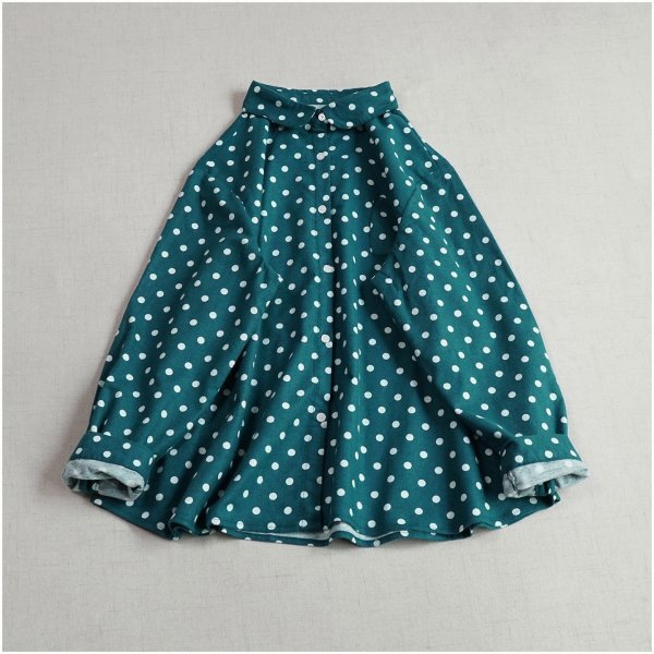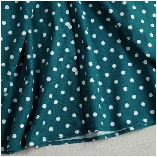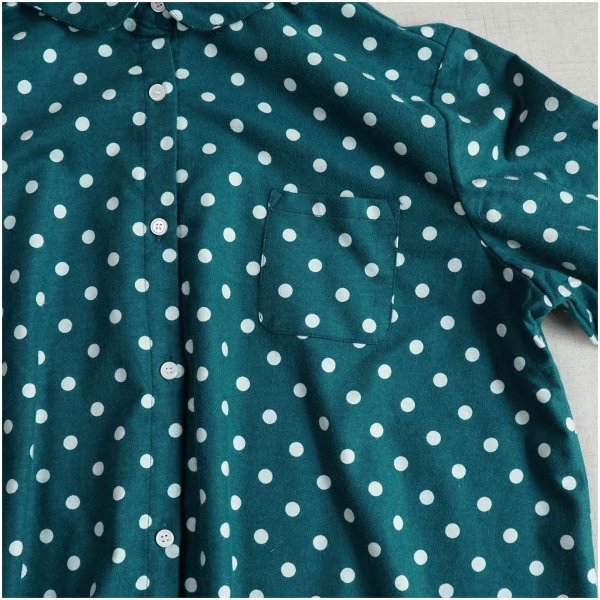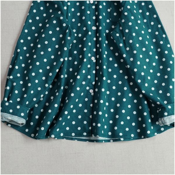 m 2510 チュニック トップス 上着 ドット 綿100% 大人可愛 シャツ オシャレ フリーサイズ ブラウス グリーン