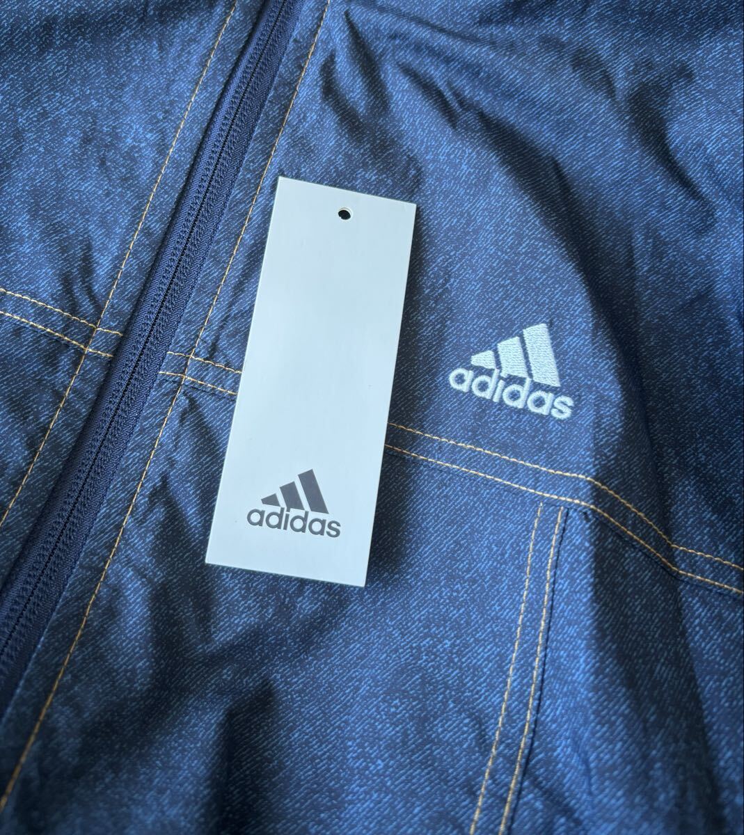 アディダス ウインドブレーカー ジャケット ジュニア デニム 総柄プリント
