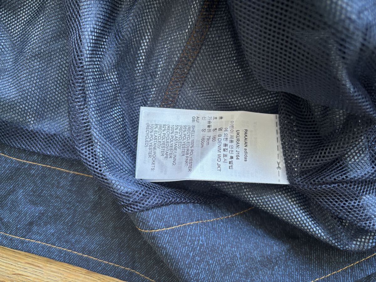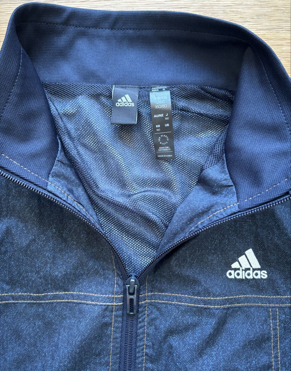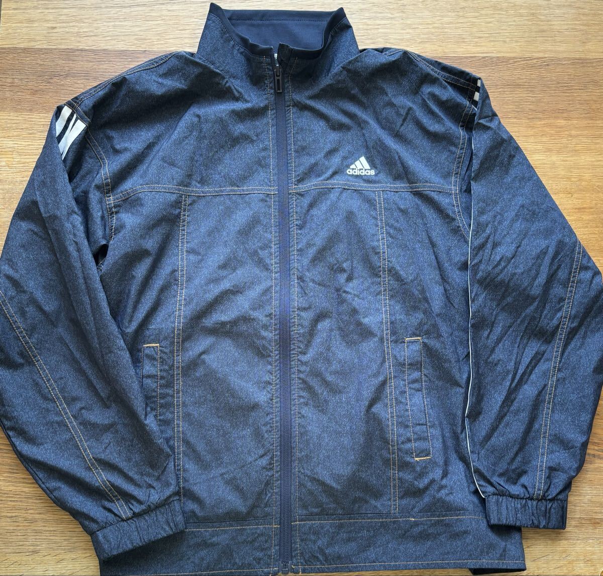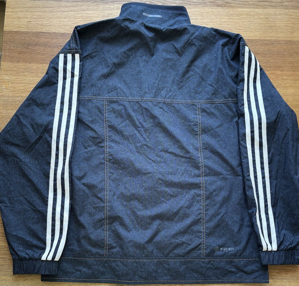 数回使用☆アディダス☆ウィンドブレイカー☆ジャンパー☆160☆ネイビー☆フードなし☆通学☆タウン☆デニム調☆秋
