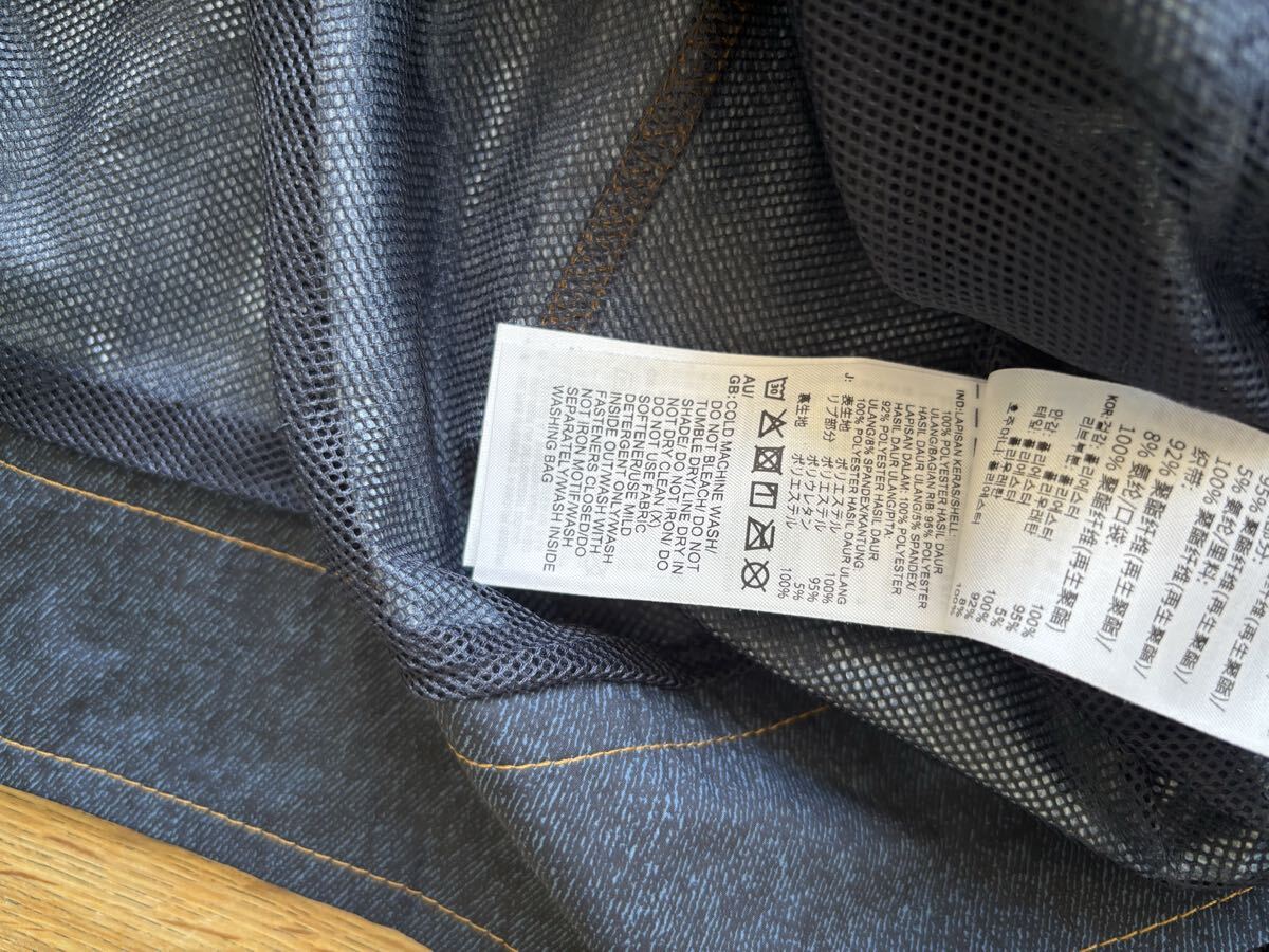 内側についているタグに記名シールをはがしたあとあり。(写真枚目右側)