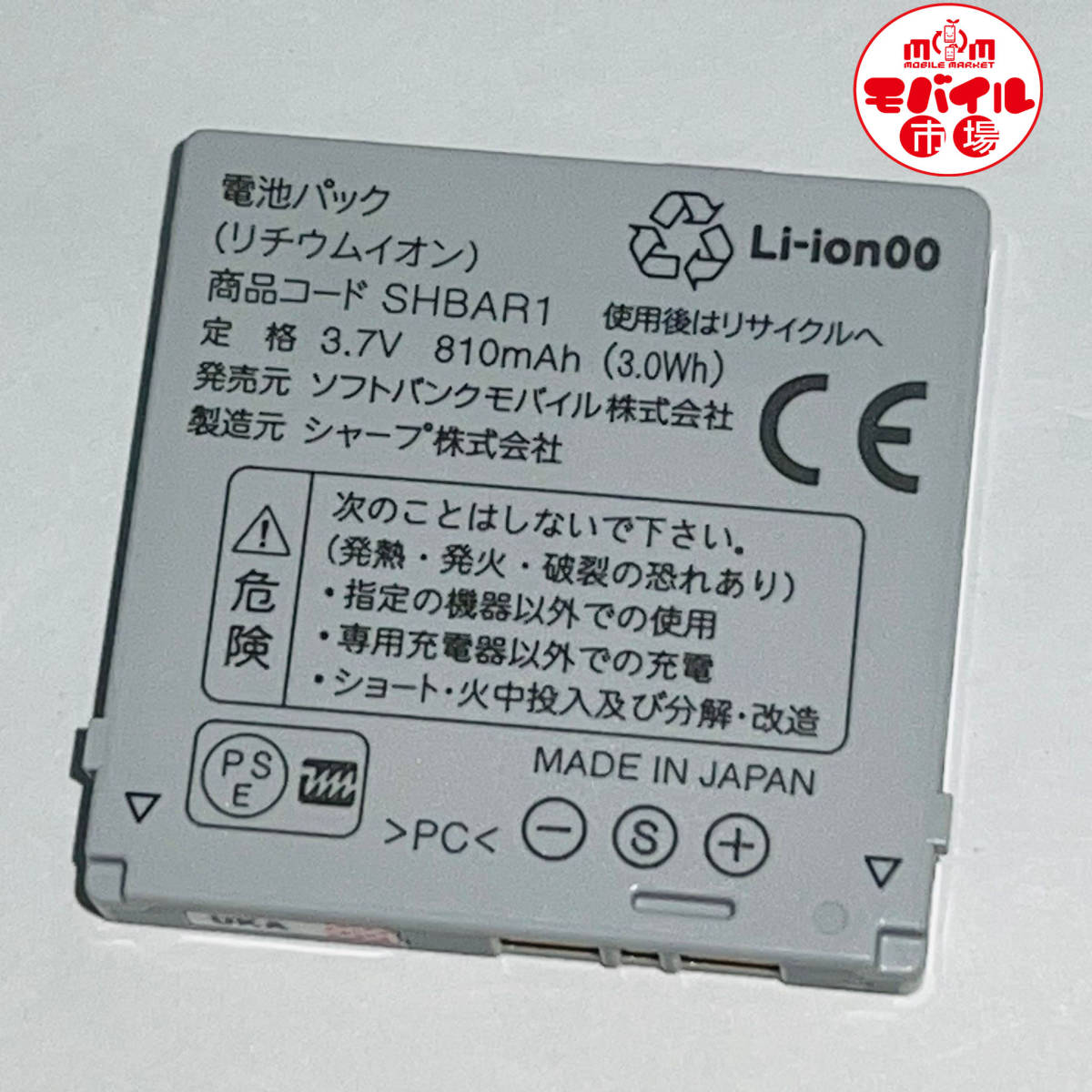 使用品名 : ソフトバンク 純正電池パック SHBAR1 シャープ製 状 態 : 充電確認済み・中古・クリーニング済み。 |