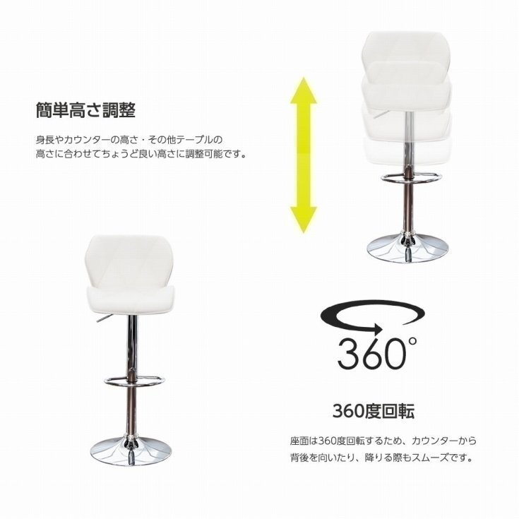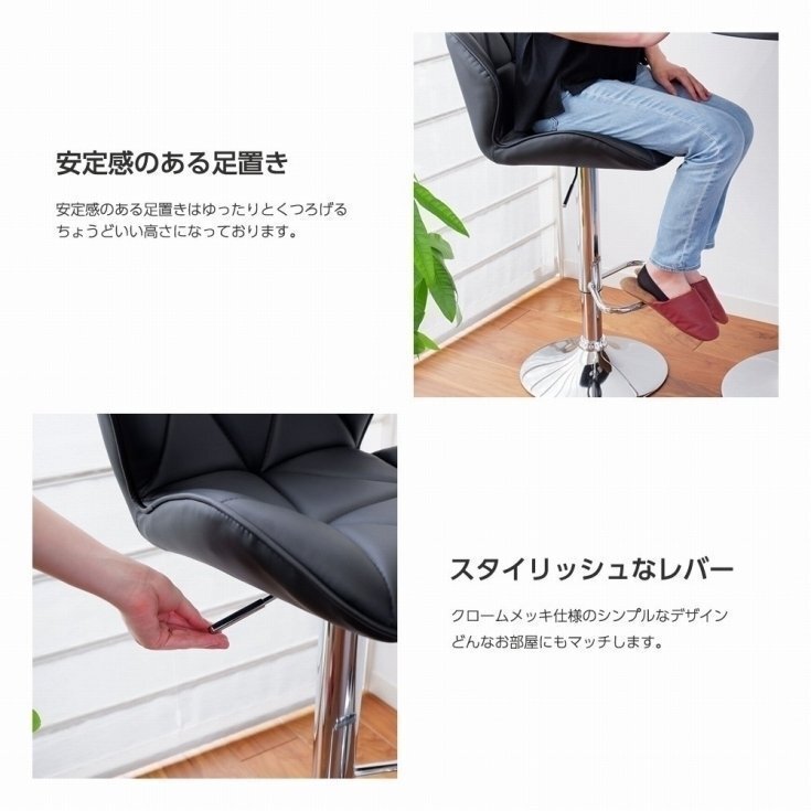 特長 | ・座面は360回転機構付き! ・一人用ソファのような座り心地のカウンターチェア。 ・クッション厚み60mmのふかふかカウンターチェア。 |