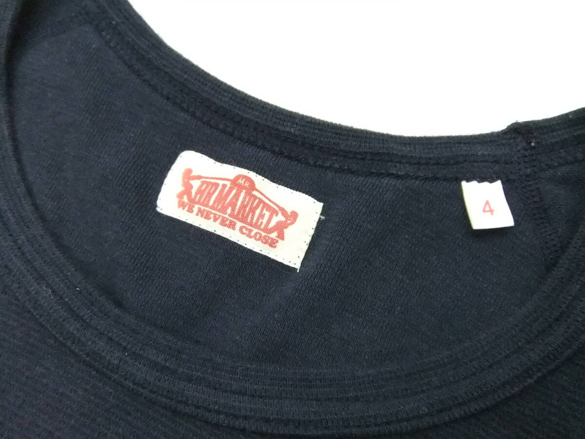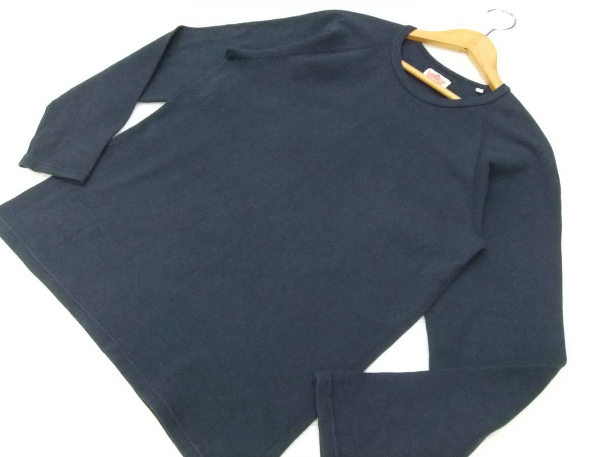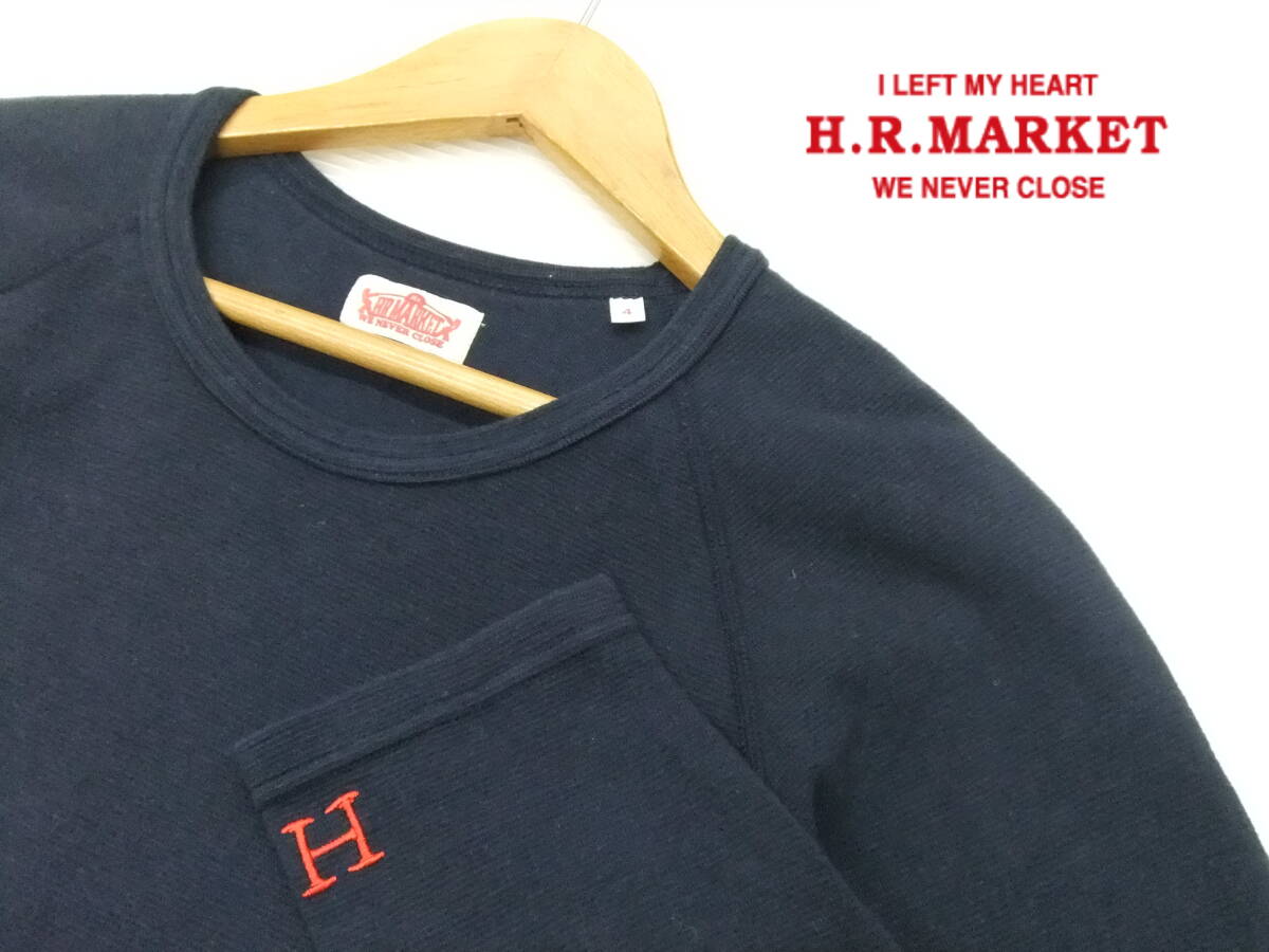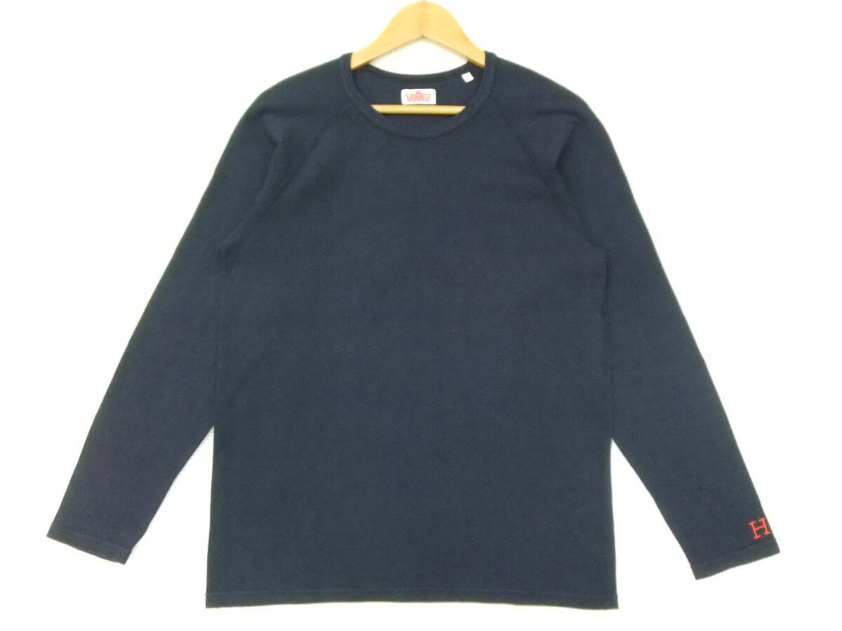 ■HRM■長袖ストレッチフライス 紺 サイズ4 XL ネイビー 袖口H刺繍 ロンT Tシャツ 聖林公司 ハリラン ハリウッドランチマーケット