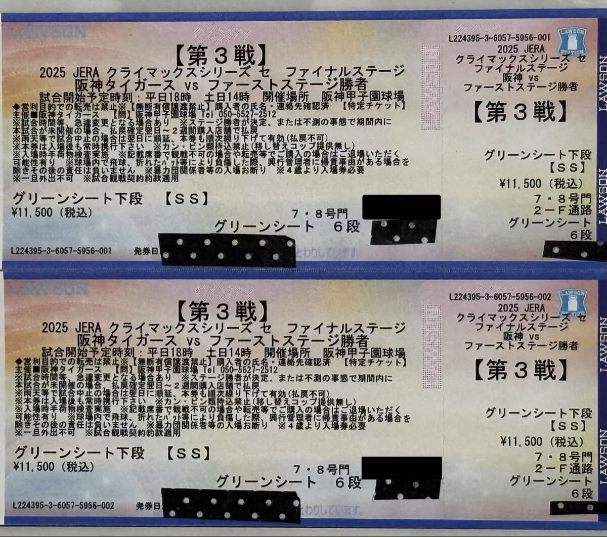 (予定されていた試合日が雨天等で中止・ノーゲームとなる場合は原則試合は翌日以降に順延となってチケットは順次繰り下げて有効になっていくようです)