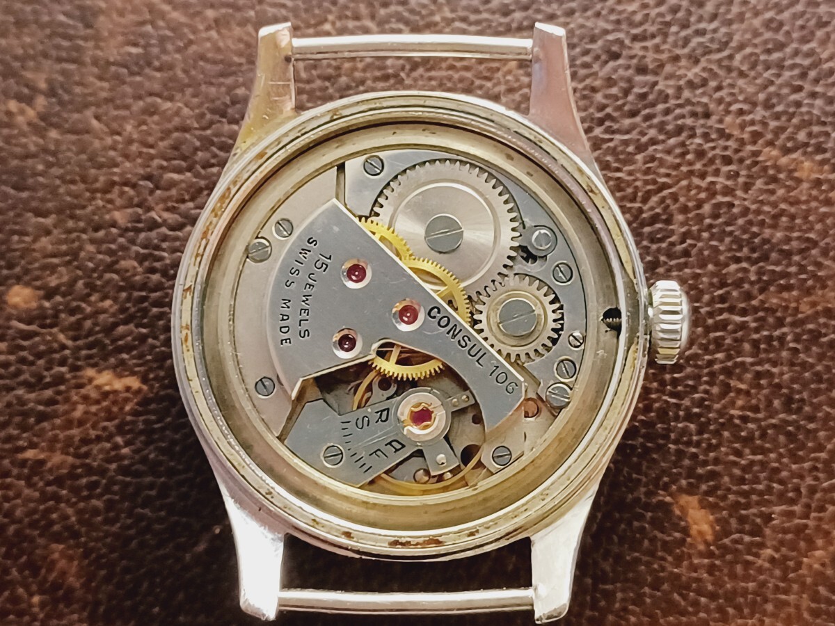 搭載ムーブメントは刻印入り17石耐震付き手巻きムーブメント。