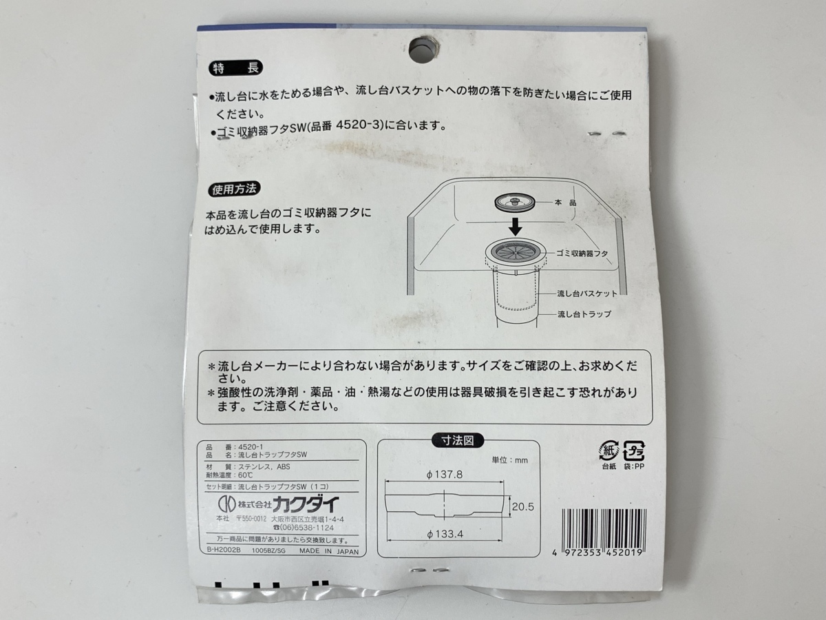 ☆レターパック発送☆KAKUDAI カクダイ 流し台トラップフタSW 品番4520-1 φ137.8 ステンレス 取替用/キッチン/シンク ②