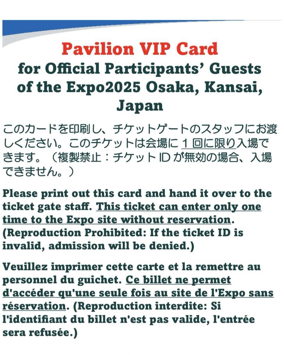 <PDFデータでのお渡し> 大阪関西万博 Pavillion VIP Card