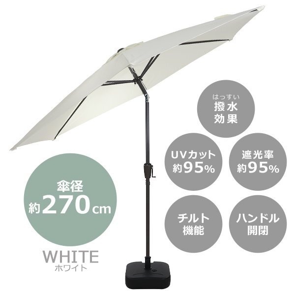 商品名 | 送料無料 ガーデンパラソル 直径約270cm ベースセット 撥水 UVカット 紫外線対策 日除け 日よけ 大型 チルト機能 角度調節 ハンドル開閉 紫外線対策 軽量 ベース付き 水 砂 ビーチパラソル パラソル スタンド BBQ アウトドア キャンプ 庭 カフェ parasolm706 |