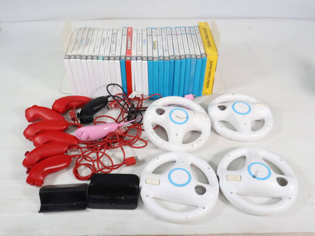 未検品★Nintendo Wii・WiiU用ソフト周辺機器 まとめて41点セット まとめ売り ヌンチャク マリオカート ウイニングイレブン a878