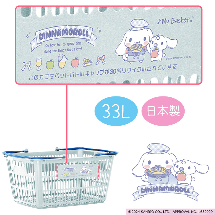シナモロール マイバスケット33L サンリオ サンエックス レジカゴ スーパー 買い物かご 日本製 マイバック マイバスケット