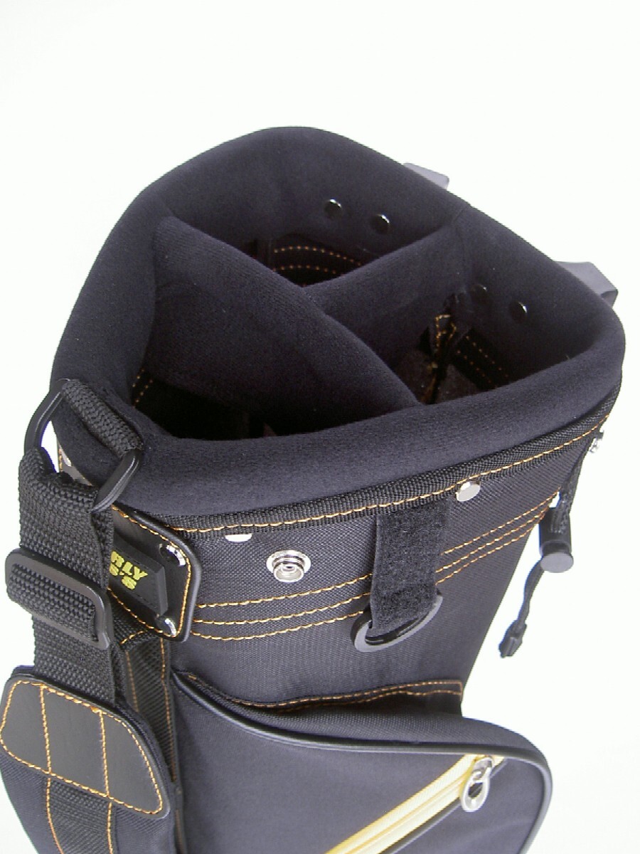 ショートコースや練習場で使うのに最適です。 専用のフードもついています。 左右に大小のポケットがあります。 <型>6.5型 <重量>約1.6kg <素材>ポリエステル+合皮 <カラー>ブラック <ロゴ>ロゴはありません。 <対応サイズ>47インチのドライバーが入ります。 <収納目安>7~8本くらいです。 |