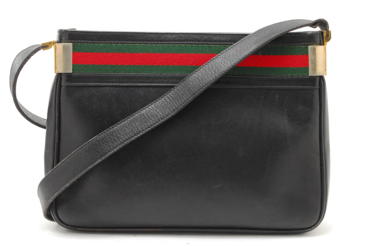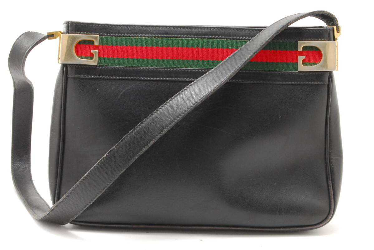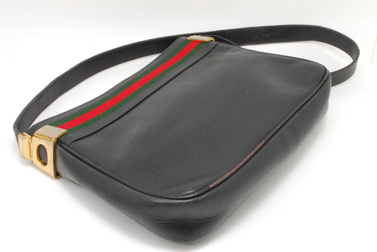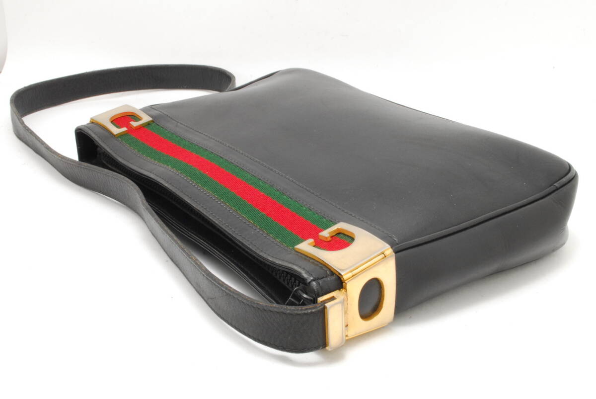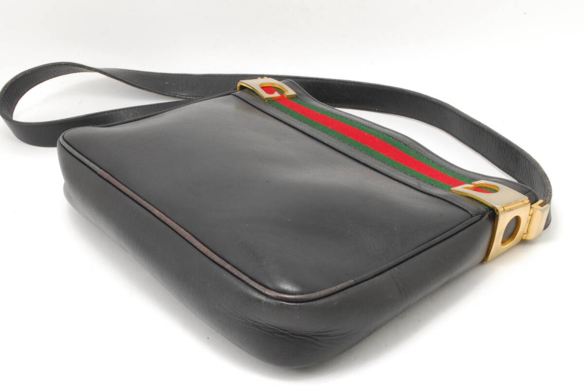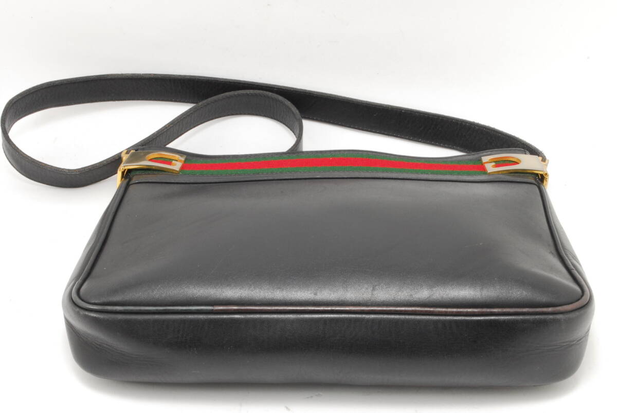 1円【極美品】GUCCI グッチ オールドグッチ ヴィンテージ GG シェリーライン ショルダーバッグ ハンド レザー ブラック A0658