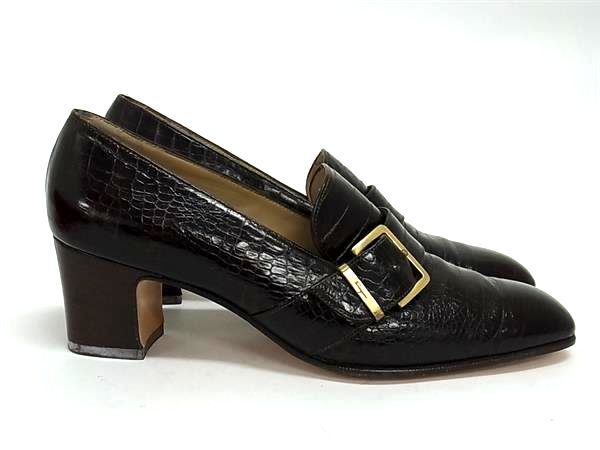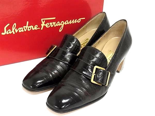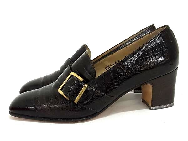 Salvatore Ferragamo フェラガモ クロコダイル型押しレザー ヒール パンプス サイズ 6 (約23.5cm) 靴 レディース ブラウン系 DJ8195