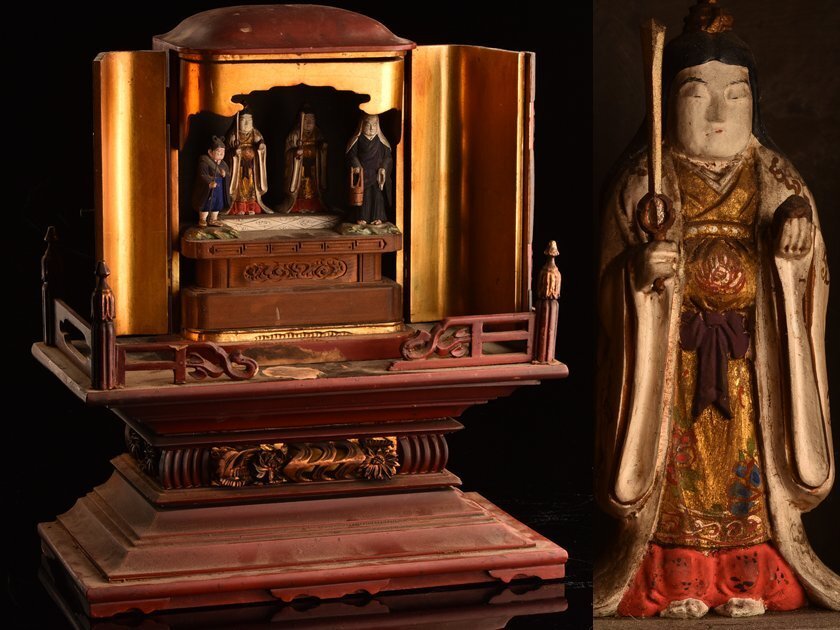 サイズ | 厨子 幅 約18×15cm 高 約26cm 台 幅 約37×20cm 高 約26cm 全体高 約43cm |