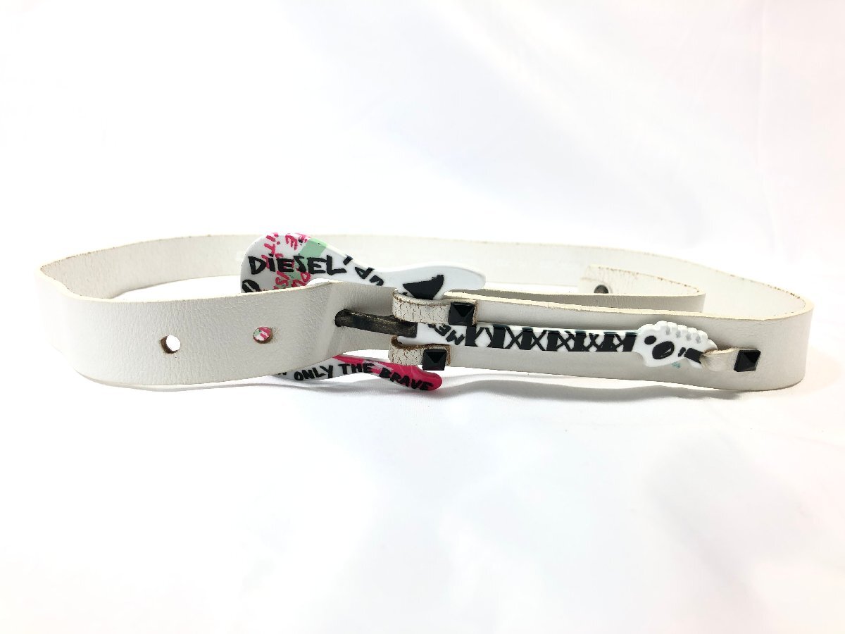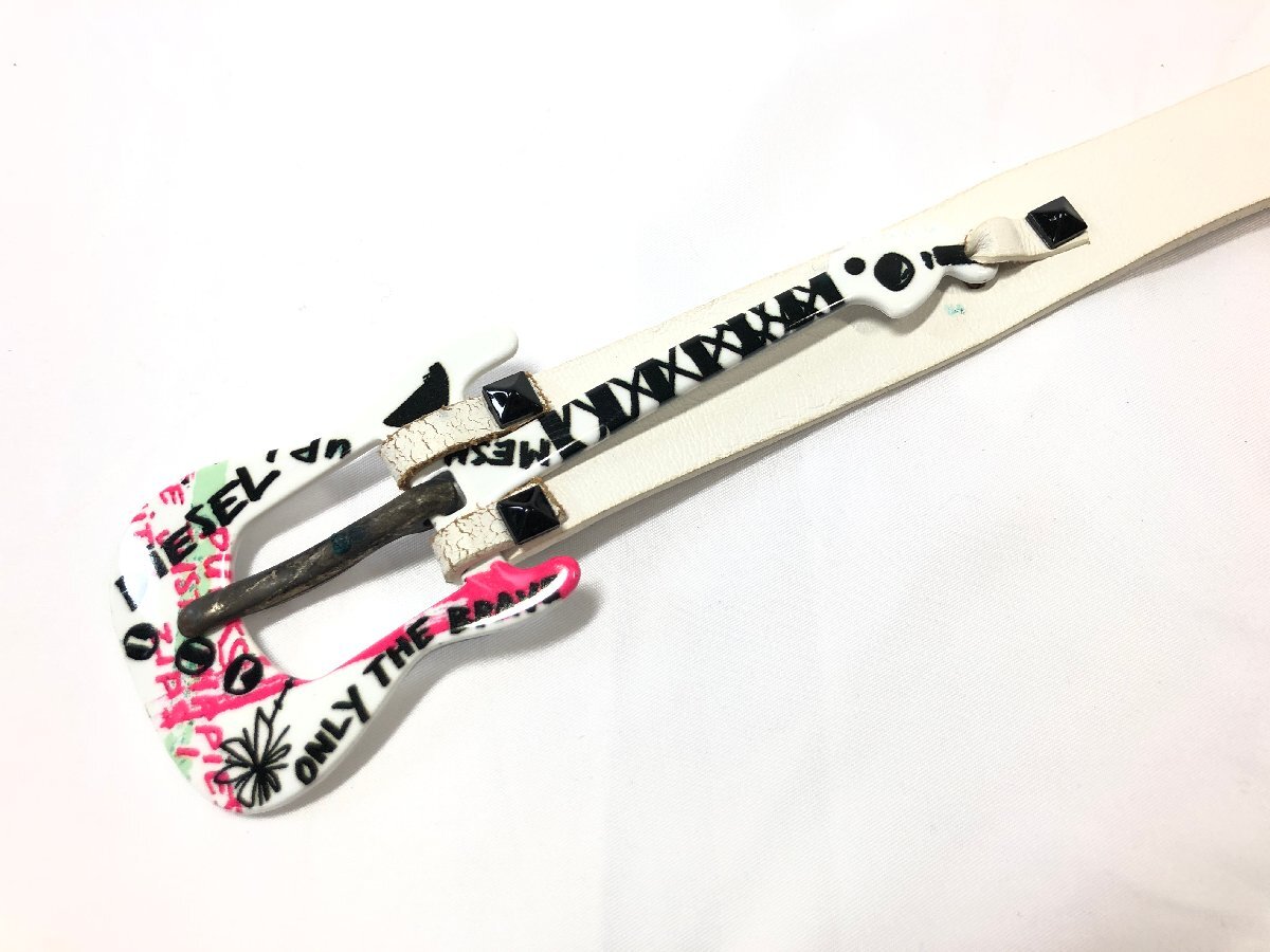 【ディーゼル DIESEL】 レザー ギターモチーフ 5つ穴 ベルト (メンズ) size90/36 ホワイト ◇30ME7753◇