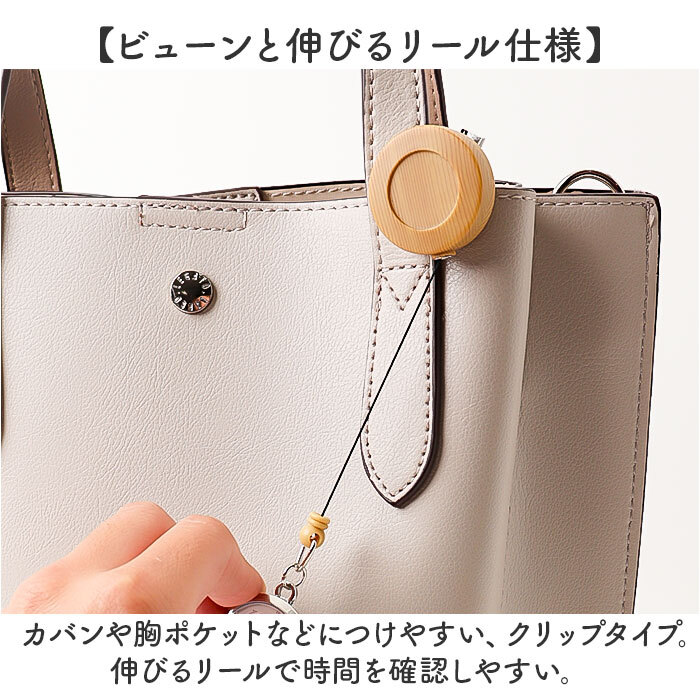 商品説明 | ・・【ナチュラルなウッディデザイン♪】 ・パルスメーターつき&蓄光ドットの高機能「リール付きウォッチ ポコック」が登場。 ・【ビューンと伸びるリール仕様】 ・カバンや胸ポケットなどにつけやすい、クリップタイプ。伸びるリールで時間を確認しやすい。 ・【ほっこり木目調に癒される】 ・ナチュラルでおしゃれなウッディデザインを採用。使うシーンを選ばないシンプルさがGOOD。 ・【暗闇でも時間を確認できる】 ・蓄光ドットを採用した、暗闇でも時間が見える作り。アウトドアやお仕事で大活躍。 ・【健康チェックもできる優れモノ】 ・パルスメーターの目盛りつき。看護師さんや日頃から健康チェックしたい方にぴったり! ・【ちょっとしたギフトにも】 ・実用的でおしゃれなアイテムなので、喜ばれること間違いなし!お好みのカラーを♪ |
