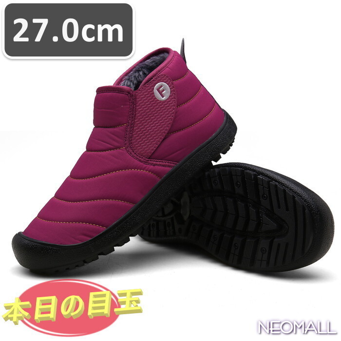 ユニセックス スノーシューズ 【869】 27.0cm ローズ ムートンブーツ スニーカー ウィンターブーツ 裏起毛 防水 防寒 防滑 冬用靴 綿靴