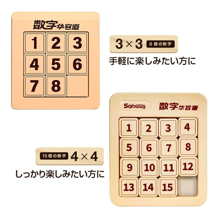 スライドさせて数字を並べていくシンプルなゲーム性の数字パズル、数字華容道です。