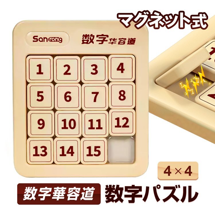 ◆数字華容道 数字パズル 4×4 マグネット内蔵 知育玩具/頭の体操/集中力忍耐力向上/暇つぶしに パズル脱出ゲーム 磁力吸着タイプ紛失防止【4×4】NBHRD44