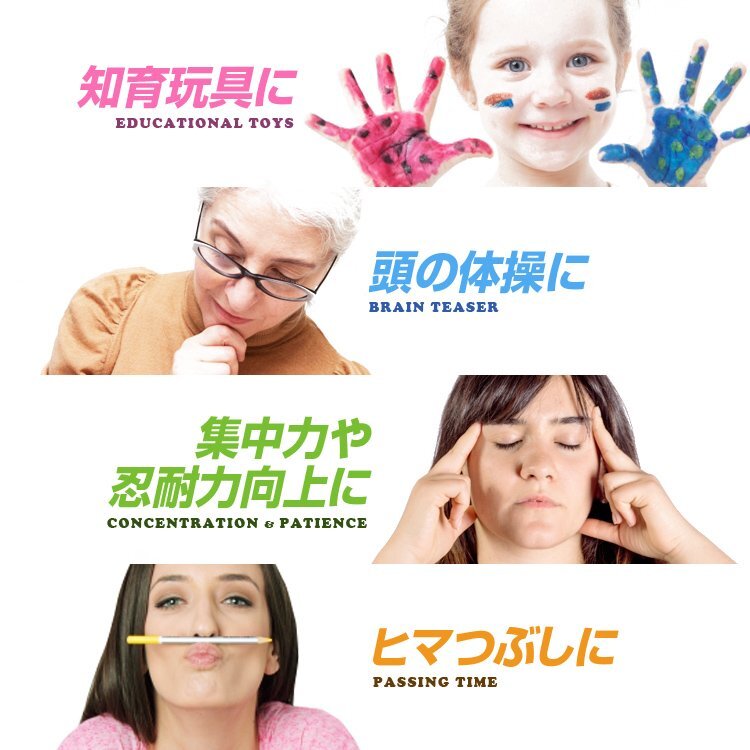 お子さまの知育玩具、ご年配の方の頭の体操、ビジネスマンや受験生等の集中力・忍耐力の向上、また旅行や出張、通勤通学等の乗り物移動中など幅広い用途とシーンで活躍します。