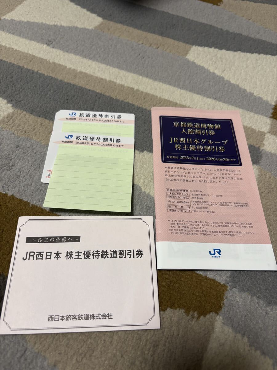 JR西日本株主優待券未使用2枚(2026年6月30日まで有効)