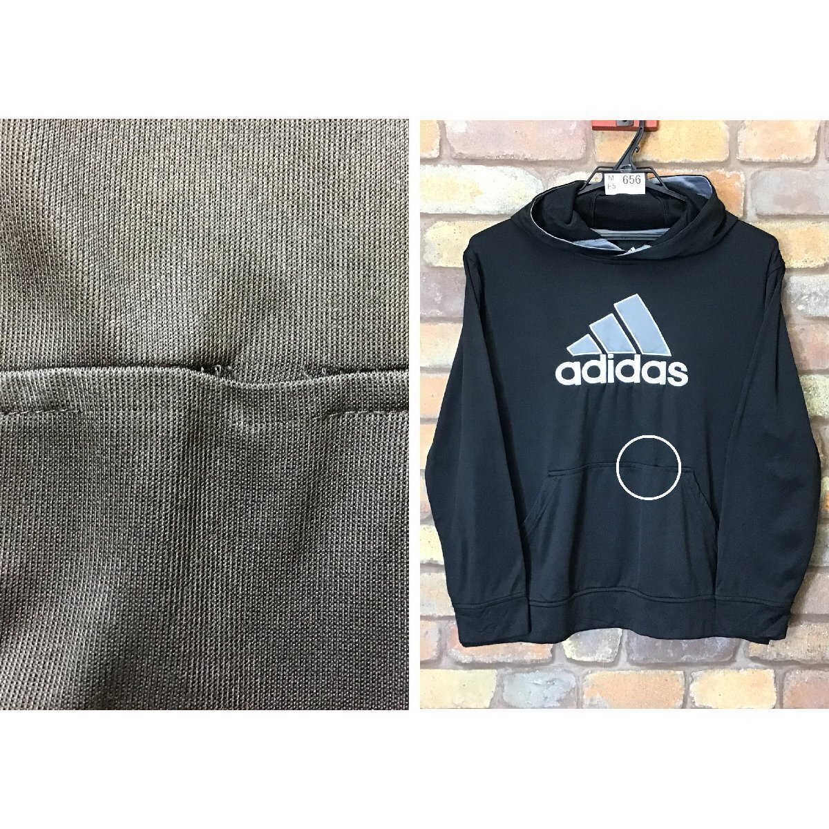 合計落札金額¥8,000円以上で、、、 送料無料!! ※こちらからの[合計支払い金額通知]をご確認の上、お支払い下さい♪ -------------------------------- 【 adidas アディダス 】 ビッグパフォーマンスロゴ フーディ ● USA輸入・正規品 ● ● 海外サイズ規格 ● -------------------------------------------------------- 胸のデカロゴは刺繍×アップリケ仕様で、立体感があり豪華です。 人気の黒×白のバイカラー◎ 後ろ襟、ポケット上部にステッチの糸抜けがあります。 ポケットのステッチはリペア補修可能、後ろ襟の糸抜けも フードで隠れるので目立ちません。 ------------------------------------------------------ ◆ サイズ ◆ ユース L 150 ※下記実寸のご確認をお願いいたします。 ◆ 実寸◆ 肩幅:46cm 身幅:55cm(両脇下間を計測) 着丈:56cm(背面襟元~裾を計測) 袖丈:54cm 素人採寸の為、多少の誤差はお許しください。 -------------------------------------------------------- ◆ 素材表記 ◆ ポリエステル 100% ----------------- | |||||