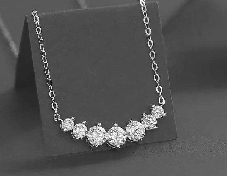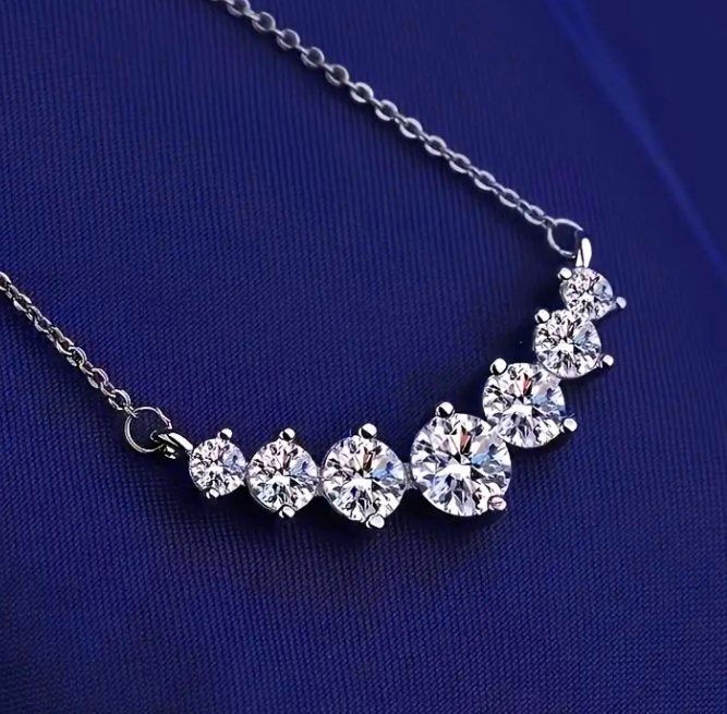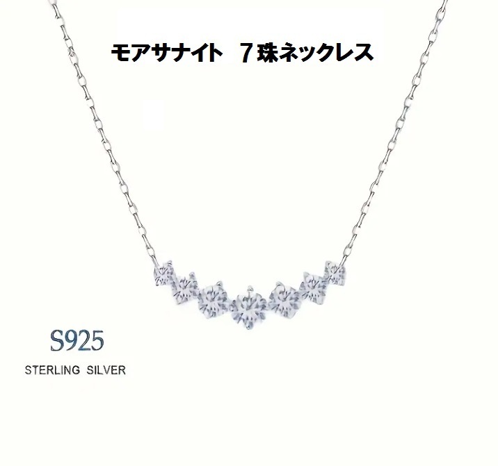 ダイヤモンドを超える2.4倍のキラメキ!虹色に輝く宝石「モアサナイト」 貴方の首元に、虹色に輝く宝石「モアサナイト」7粒 石大きさ (約): 1ctX1個 0.5ctX2個 0.3ctX2個 0.1ctX2個 合計 7個 | |||||||
