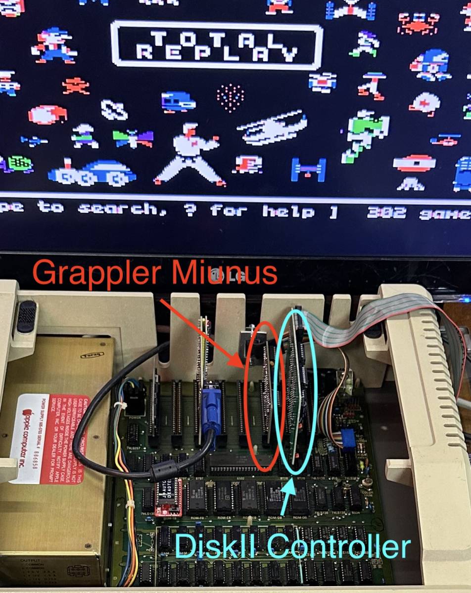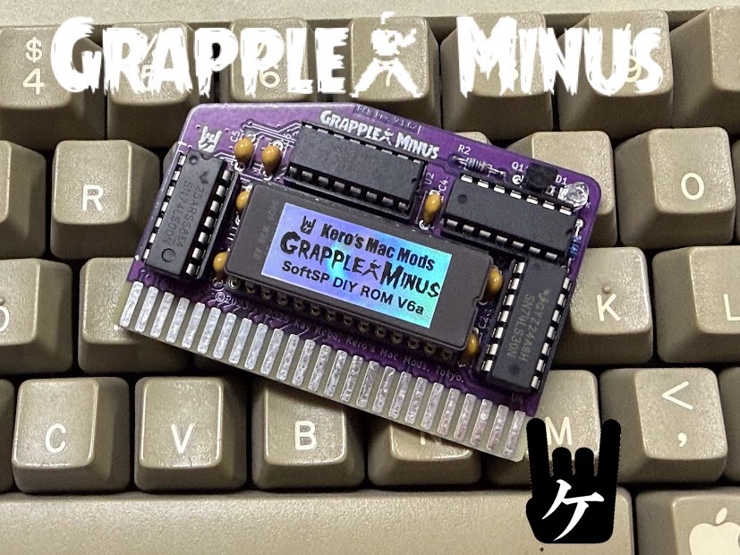 Grappler Minus は、Apple 純正の Disk II カードを Smartport カードに変えるプロトコルを備えた画期的なカードです (Grappler Minusカード + Disk IIカードの組み合わせでIWMチップを持っている完璧な Liron カードにはなりませんが、おおよその機能は同じです)。レアで高額なLironカードの代用品としてお使いいただけます。