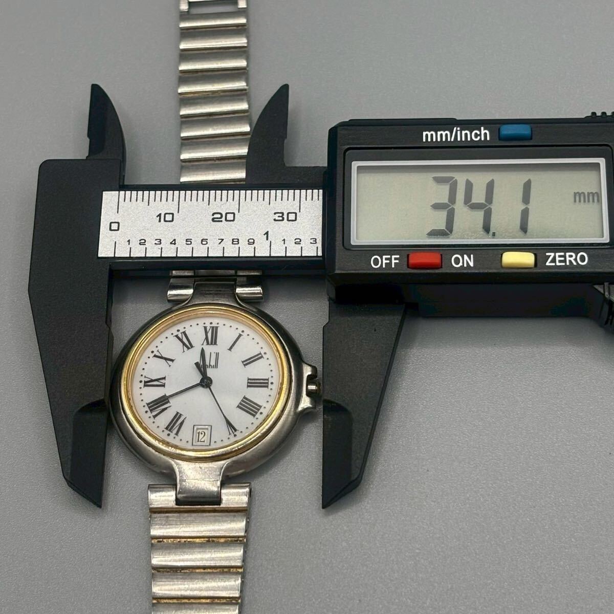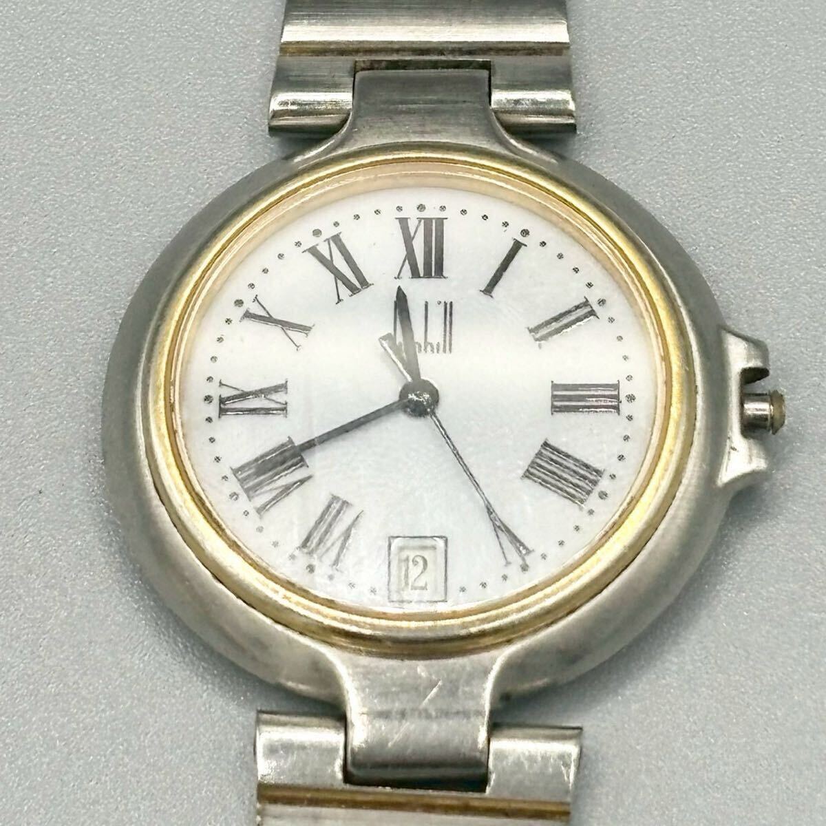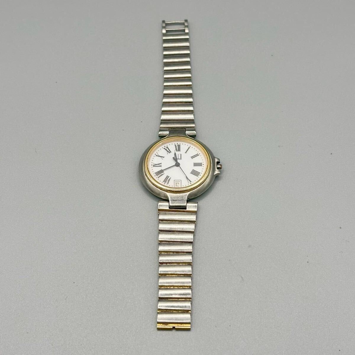 1円 dunhill ダンヒル 腕時計 アナログ クオーツ 3針 カレンダー ホワイト文字盤 メタルバンド ラウンド