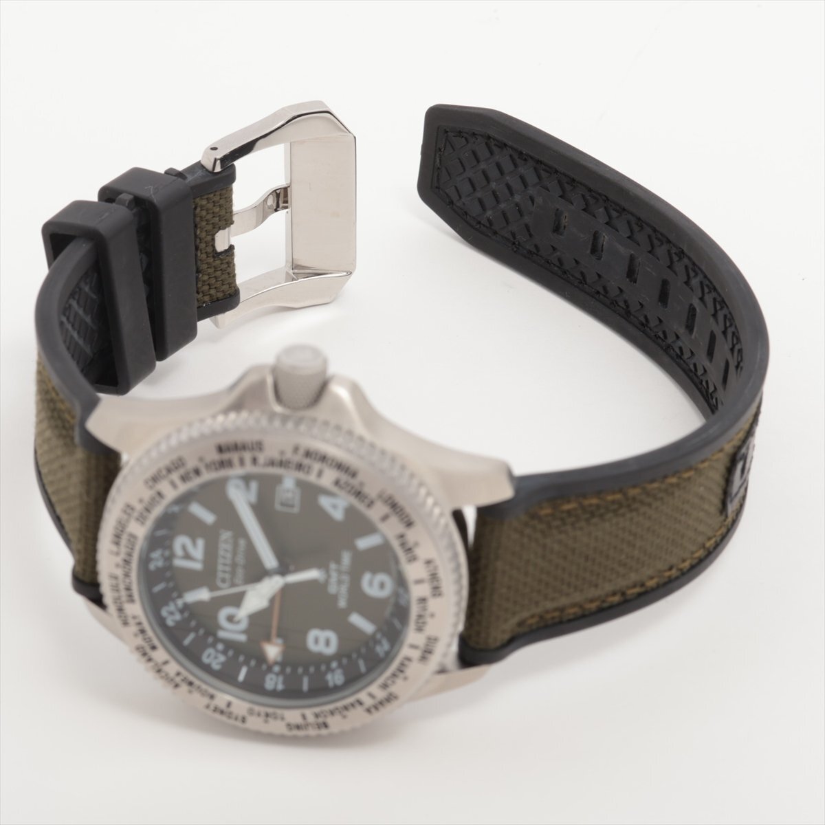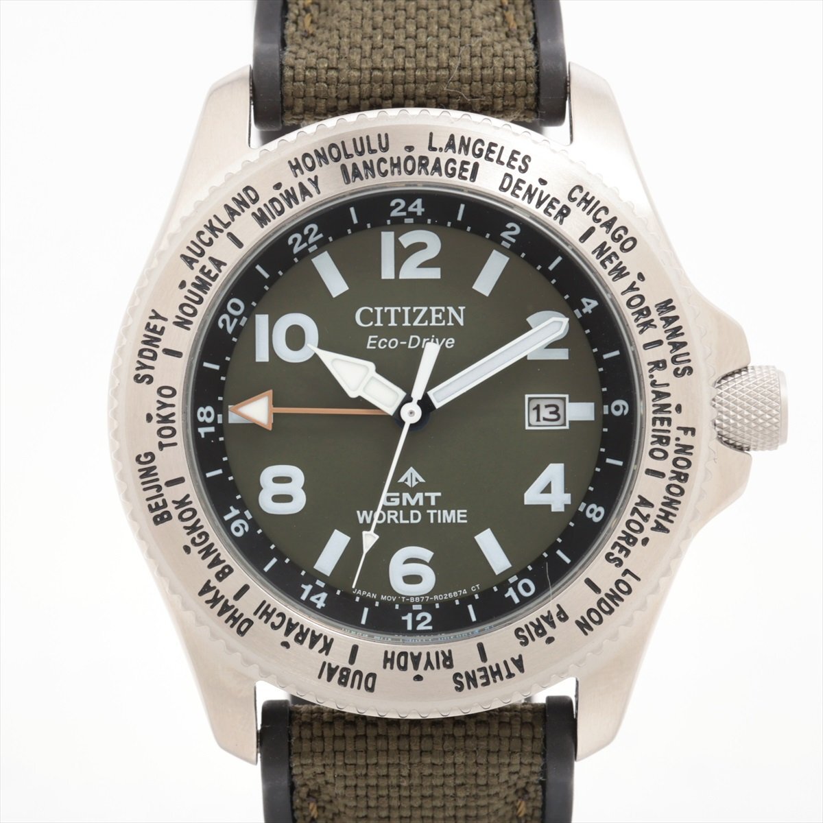 ■ 1円 ~ 中古 美品 逆輸入 ■ シチズン CITIZEN ■ ワールドタイム GMT BJ7100-23X ■箱保 B877-R011618 ソーラー オリーブ グリーン 緑