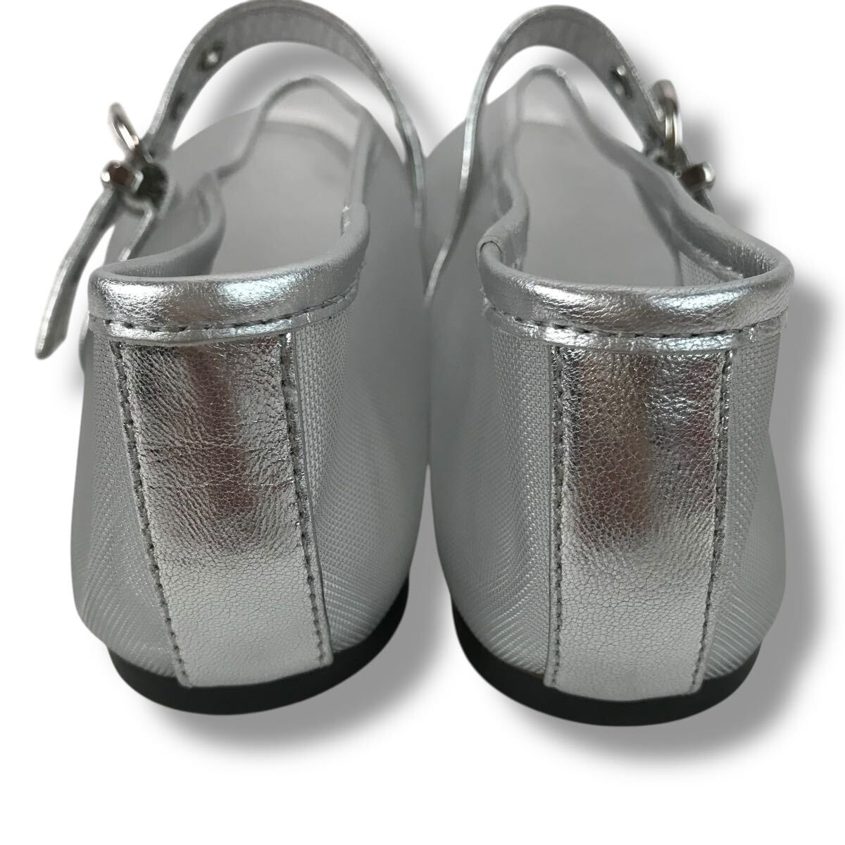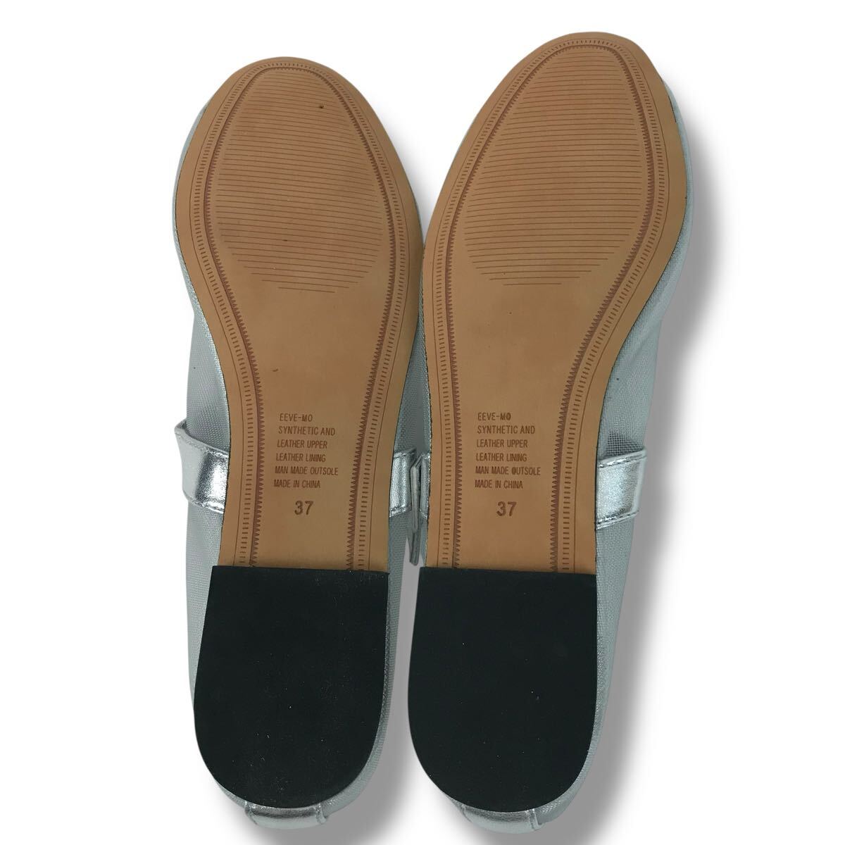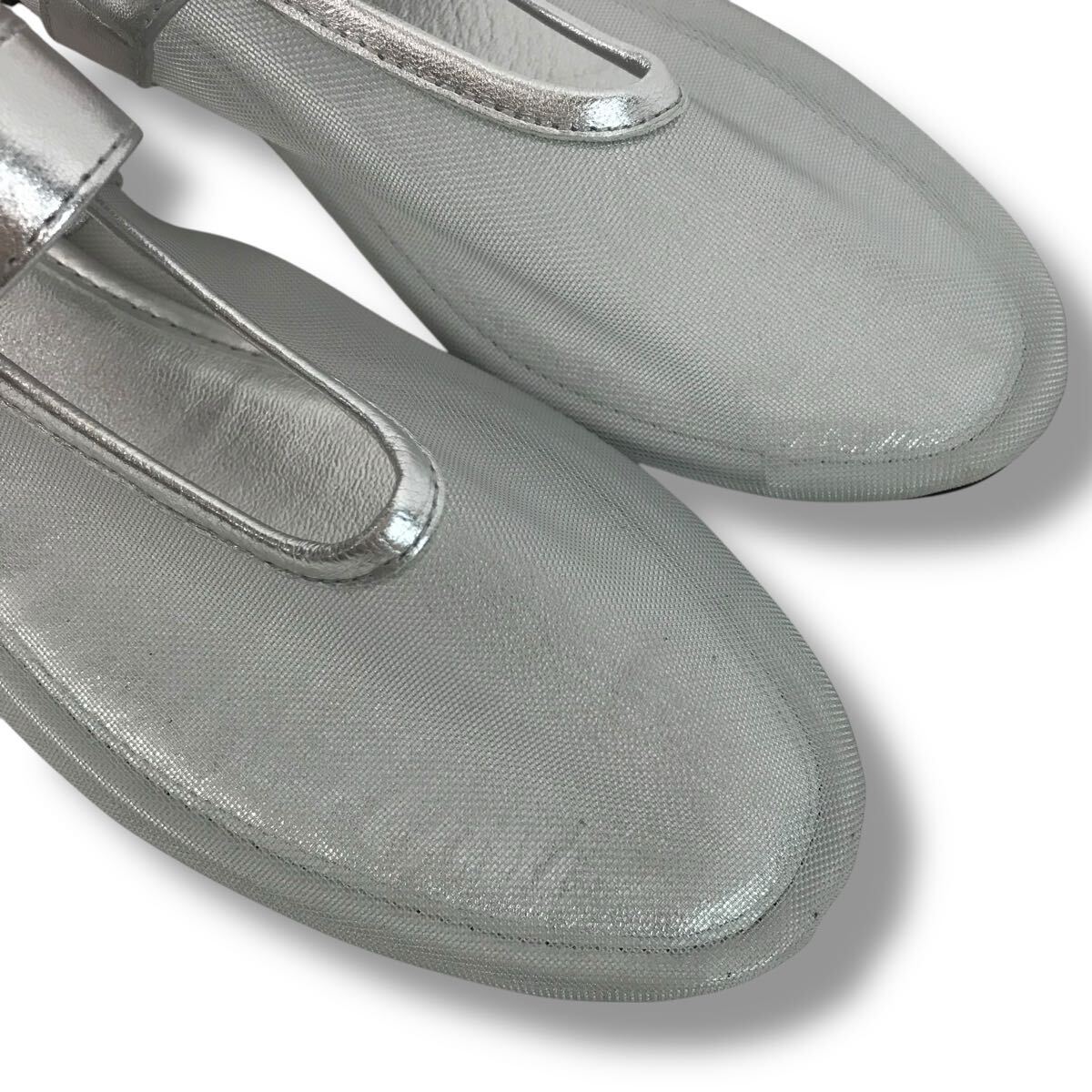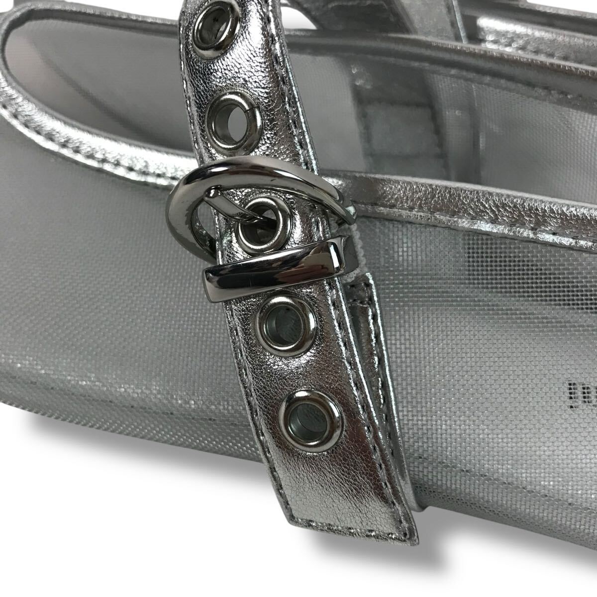 d76 未使用 Mollini モリーニ メッシュ フラットシューズ パンプス シルバー ベルトデザイン 37 レディース 正規品 ローファー