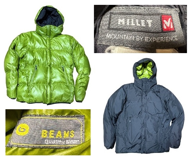 希少ビームスBEAMSxミレーMILLET★コラボ別注パーカー・ダウンジャケットケット★リバーシブル★アップルグリーンxブラック★L