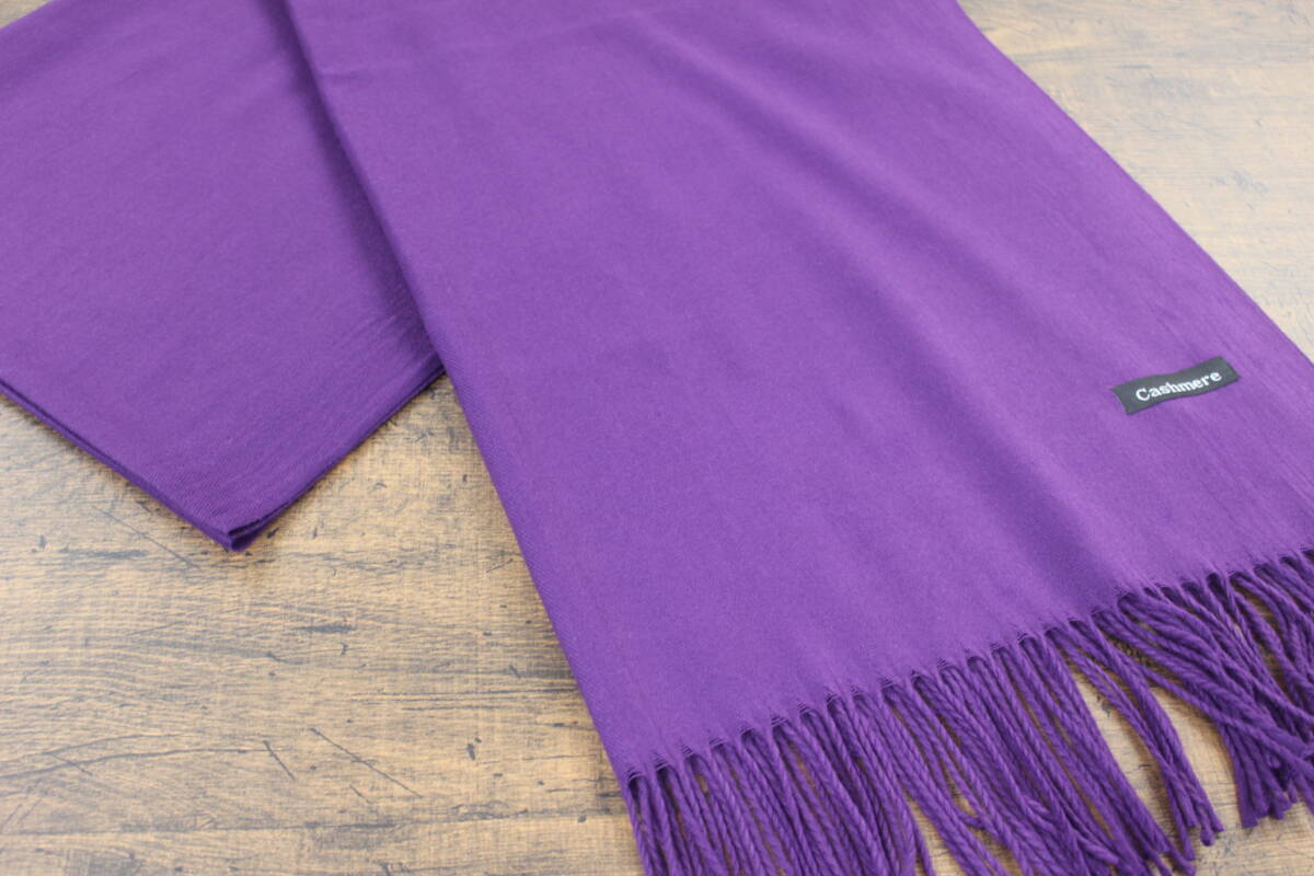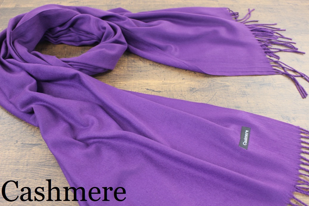 新品【カシミア Cashmere】無地 パープル PURPLE 紫 Plain ライトタッチ 大判 ストール/マフラー 訳あり