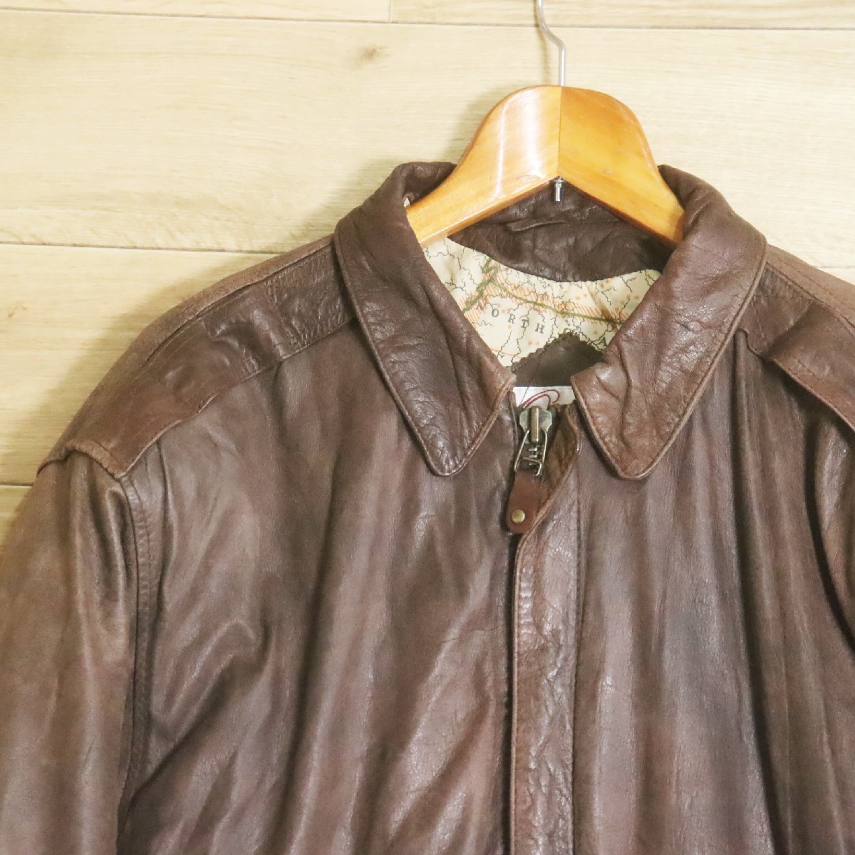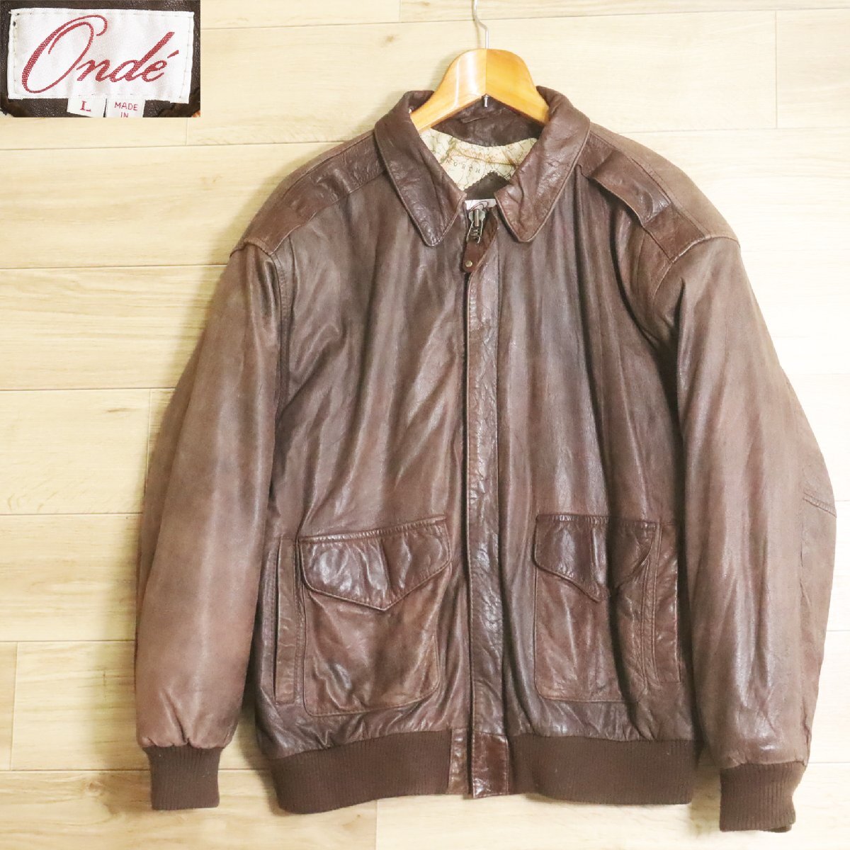 H5R/R7.2-5 Onde レザーフライトジャケット A-2 本革 レザージャケット レザーブルゾン 革ジャン 皮ジャン L メンズ ブラウン