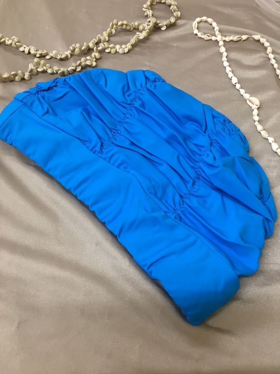 【 ジム や プール に】 お洒落 な シャーリング スイムキャップ フリーサイズ ブルー BU♪水泳帽 夏 海 水泳帽子