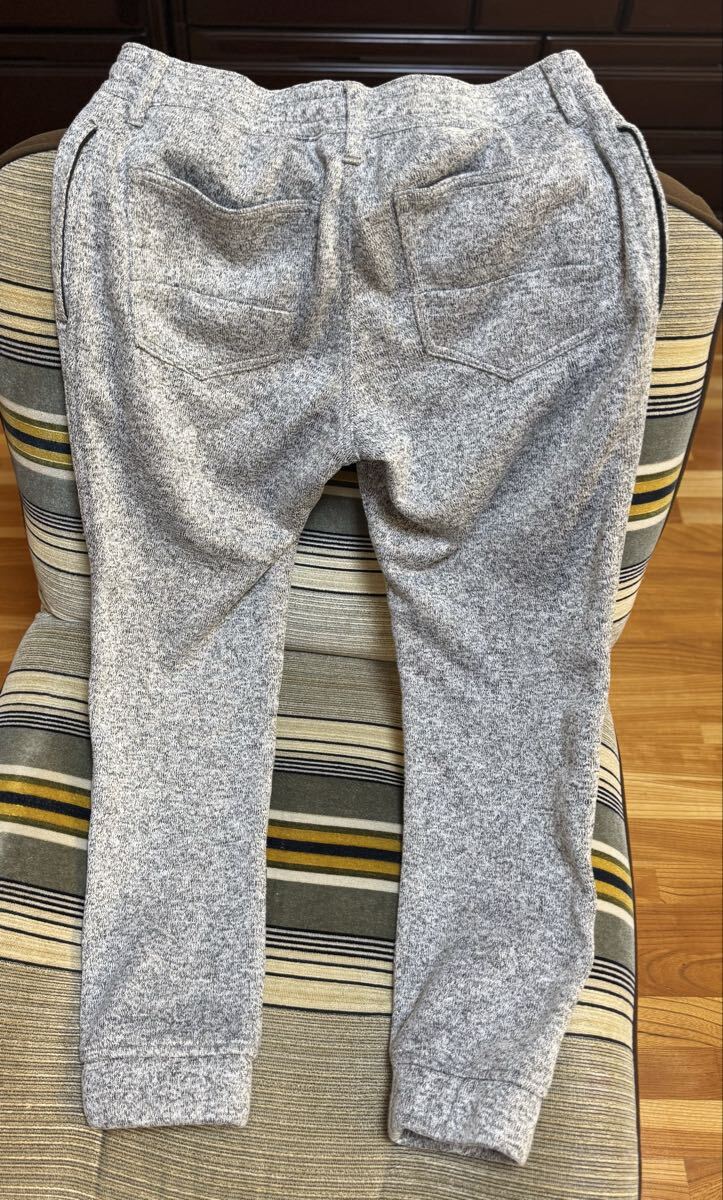 フリースタイプのパンツです。これからの時期暖かいです。股下68センチ、サイズM、薄いグレーです。