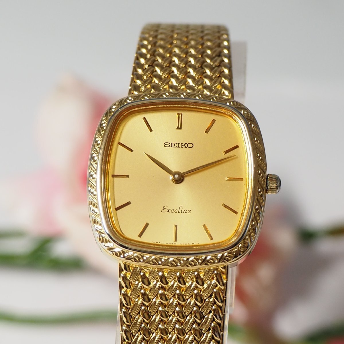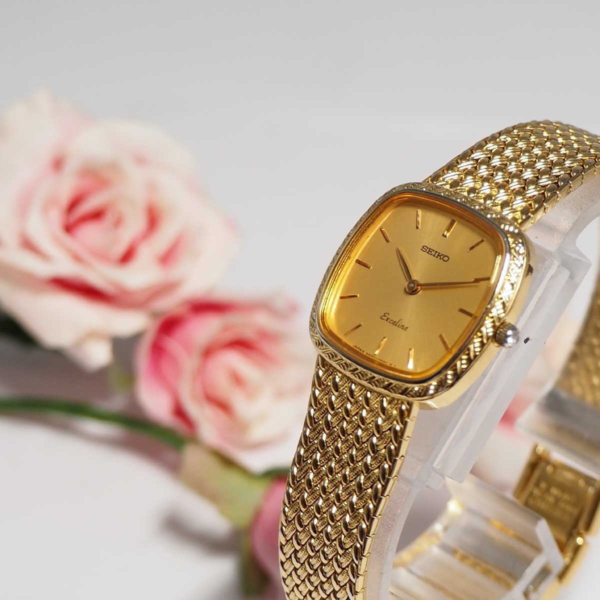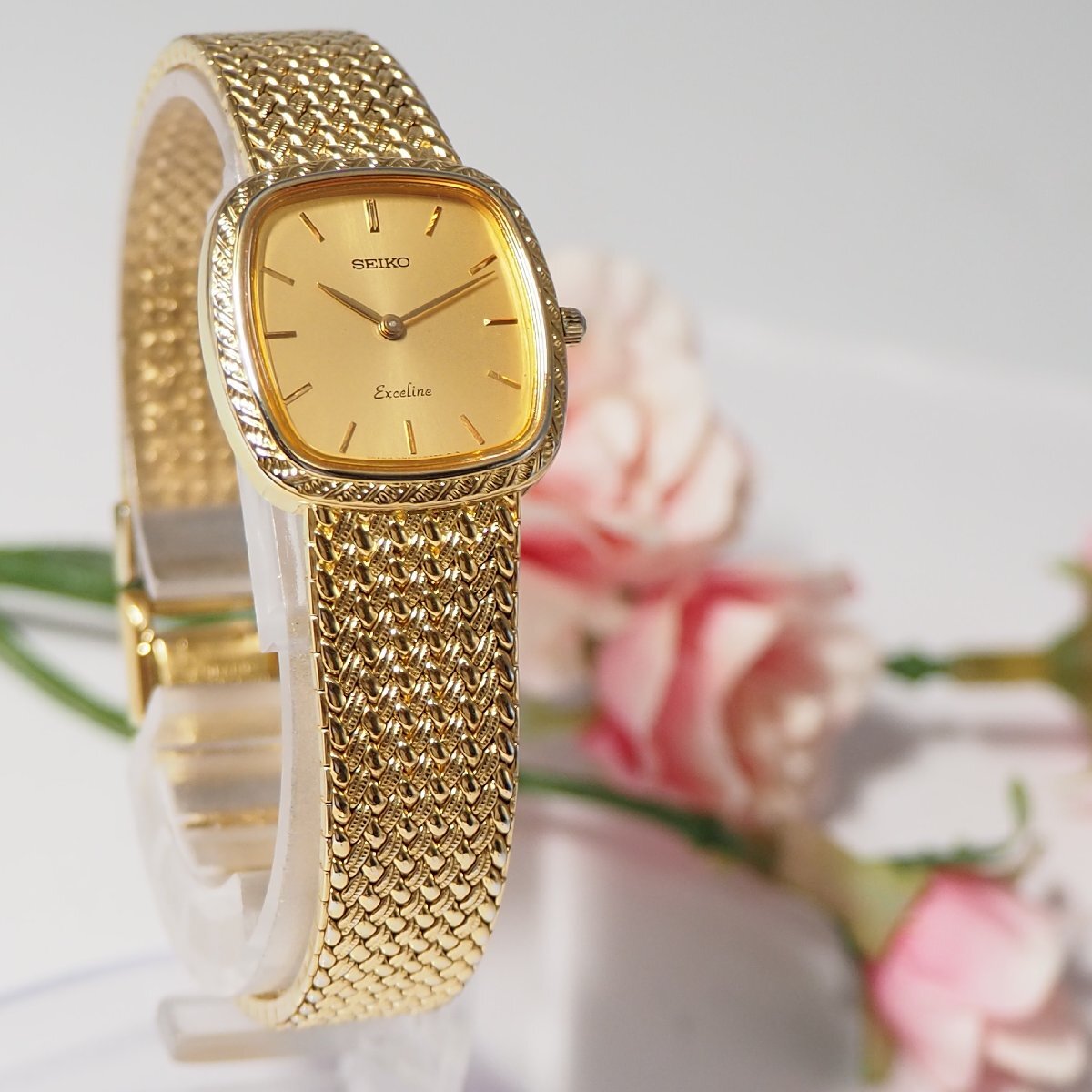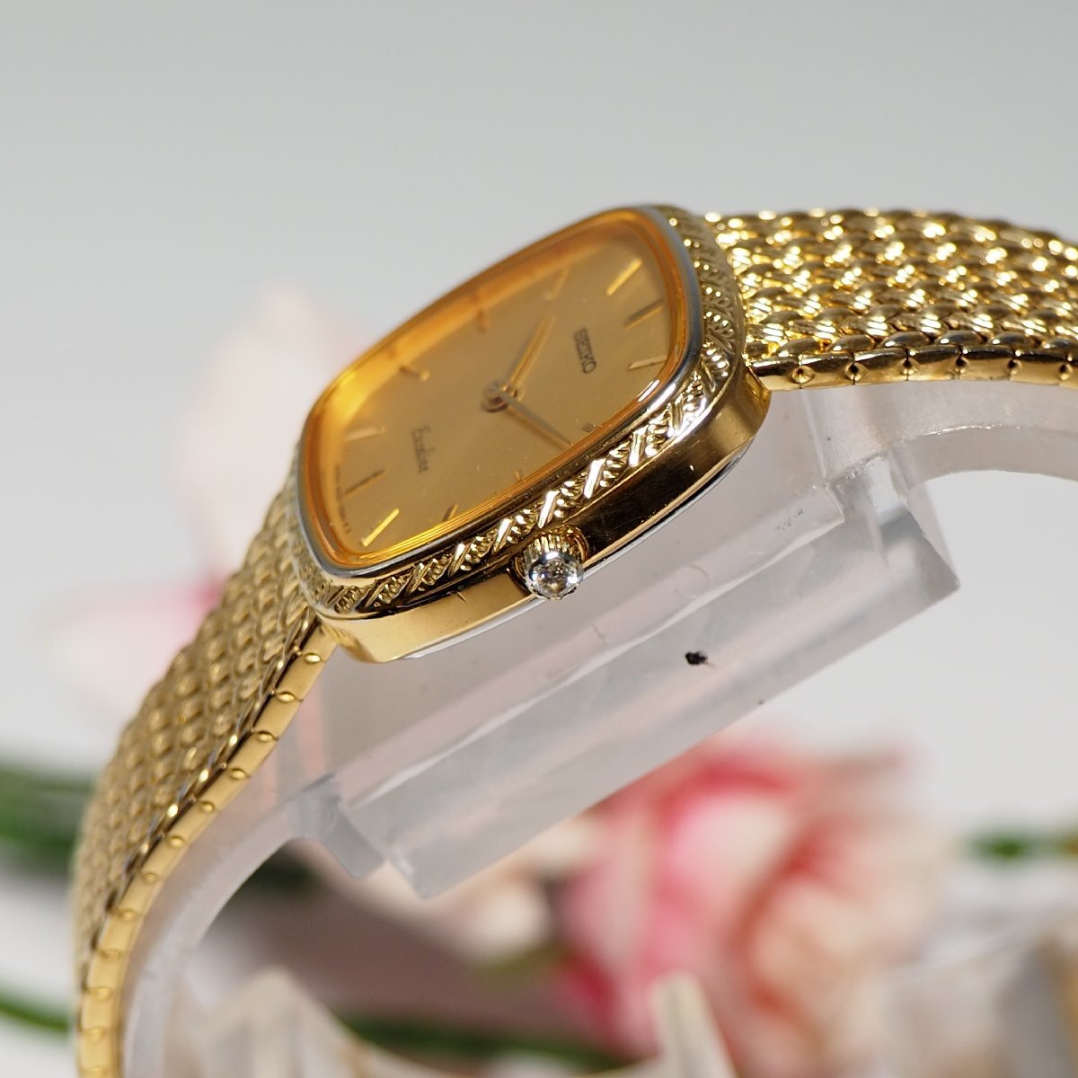 ★★★★ 美品 エクセリーヌ EXCELINE セイコー SEIKO 1Pダイヤ スクエア レディース 腕時計 ゴールド H348 中古★★★★ |