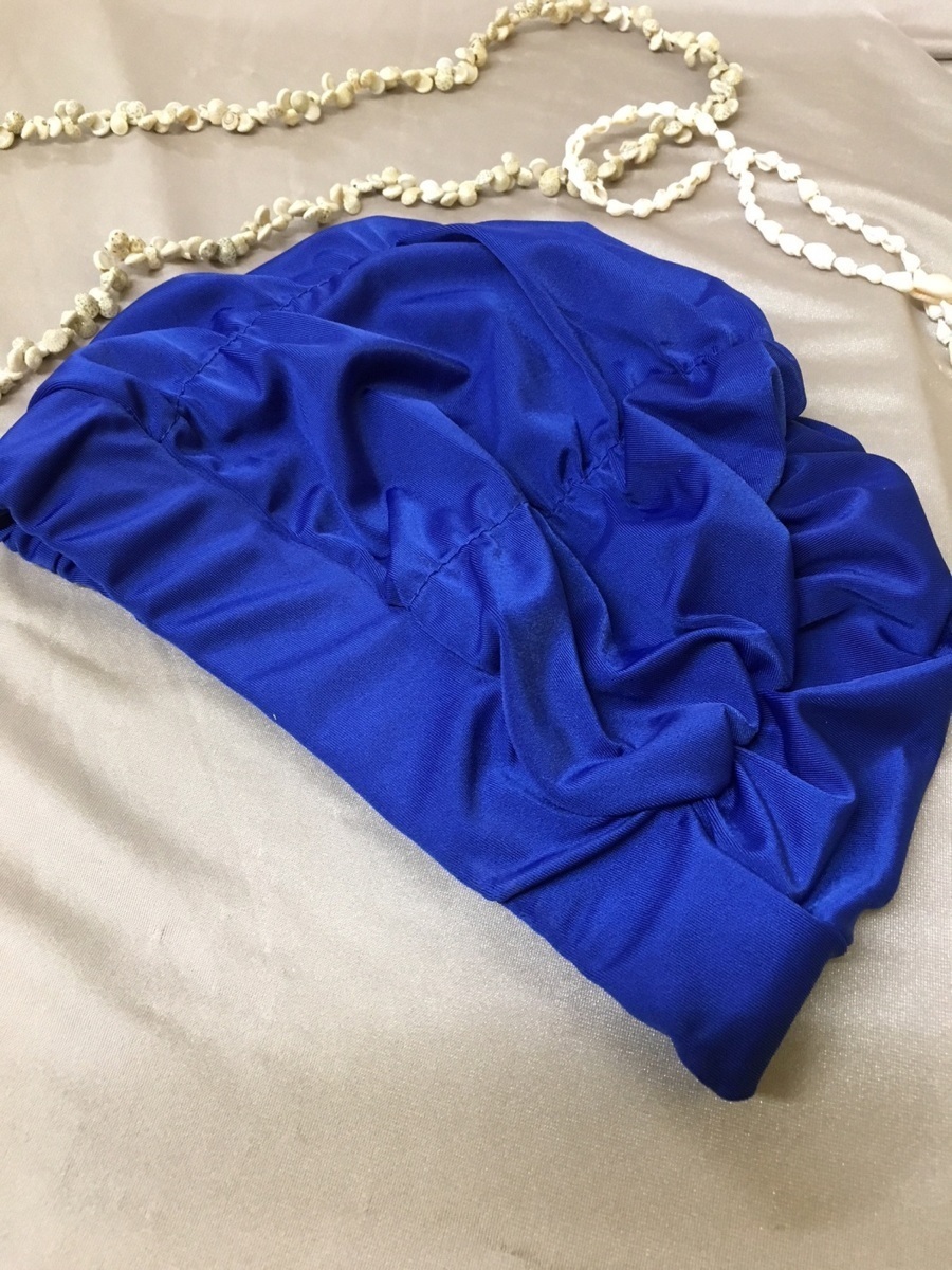 【 ジム や プール に】 お洒落 な シャーリング スイムキャップ フリーサイズ ブルー BL♪水泳帽 夏 海 水泳帽子