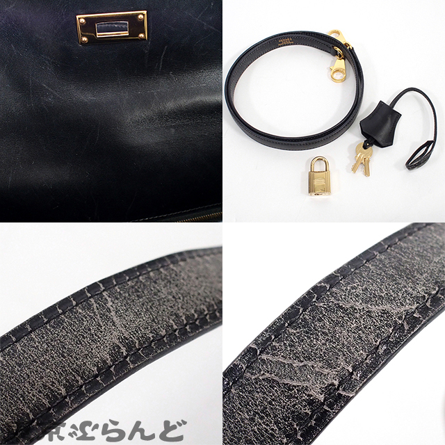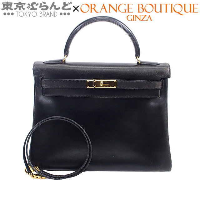 101777568 エルメス ケリー 32 ○Z刻印 ブラック ゴールド金具 ボックスカーフ 内縫 2way ショルダーバッグ ハンドバッグ レディース